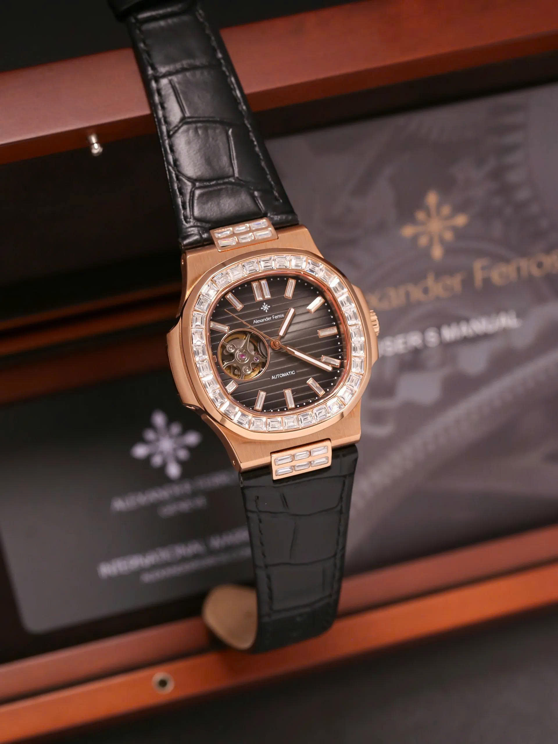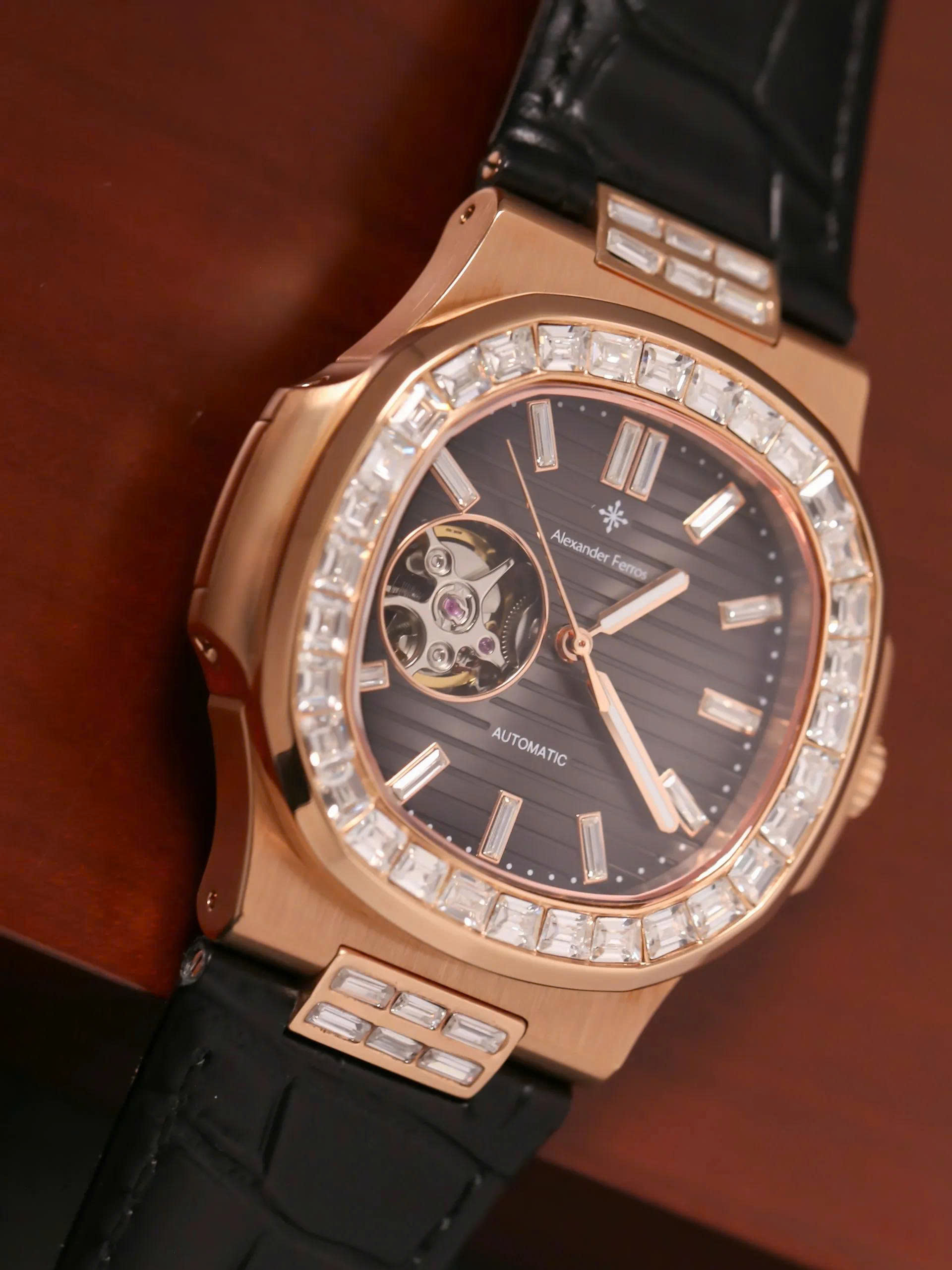 Vành đồng hồ được đính đá sang trọng, kết hợp hài hòa với tông màu tổng thể, nâng tầm giá trị thẩm mỹ và phong cách. Với bộ máy chính xác và thiết kế tỉ mỉ đến từng chi tiết, Alexander Ferros 6091 không chỉ là phụ kiện thời trang mà còn là tuyên ngôn cá tính dành cho quý ông thành đạt.