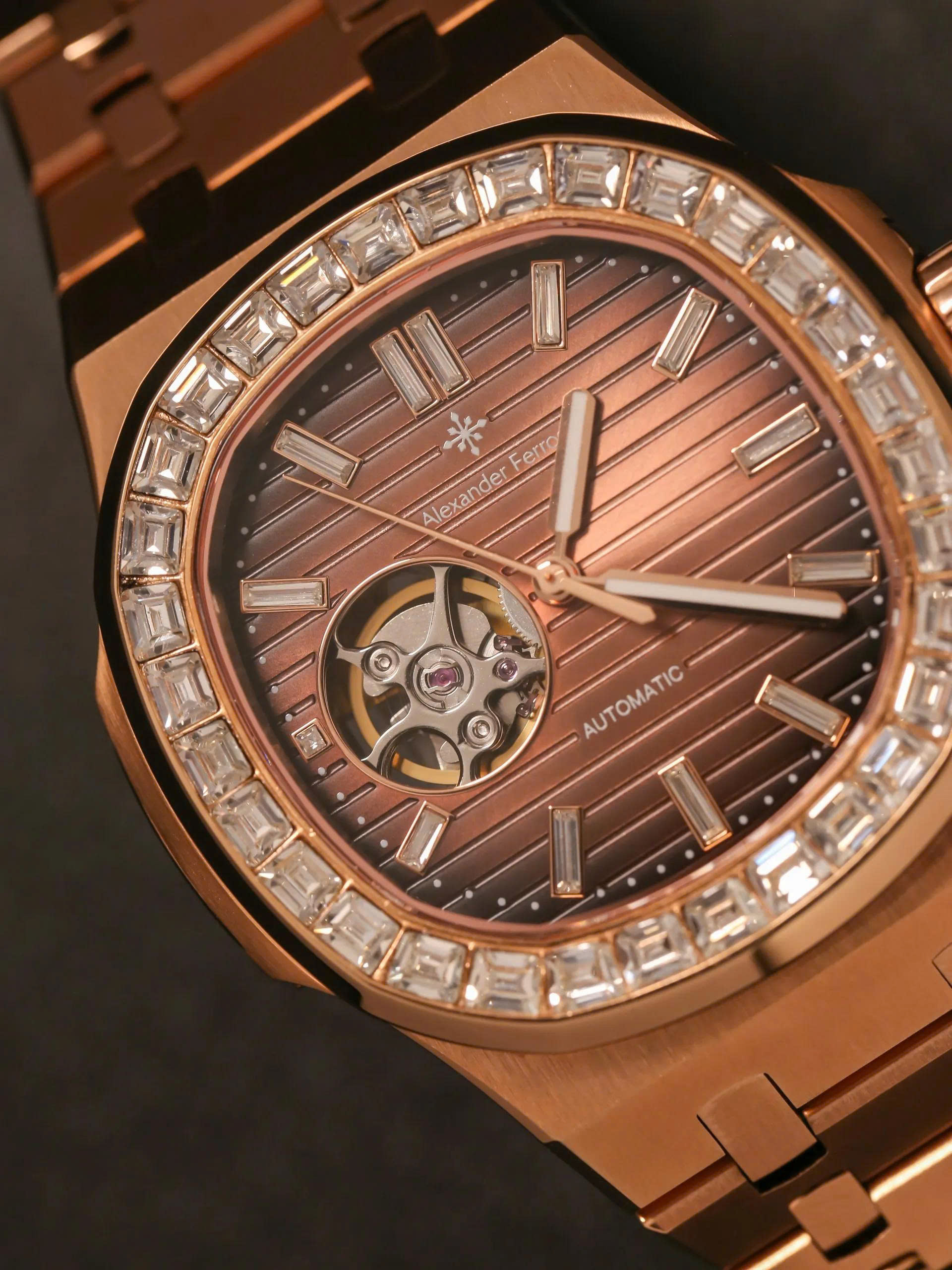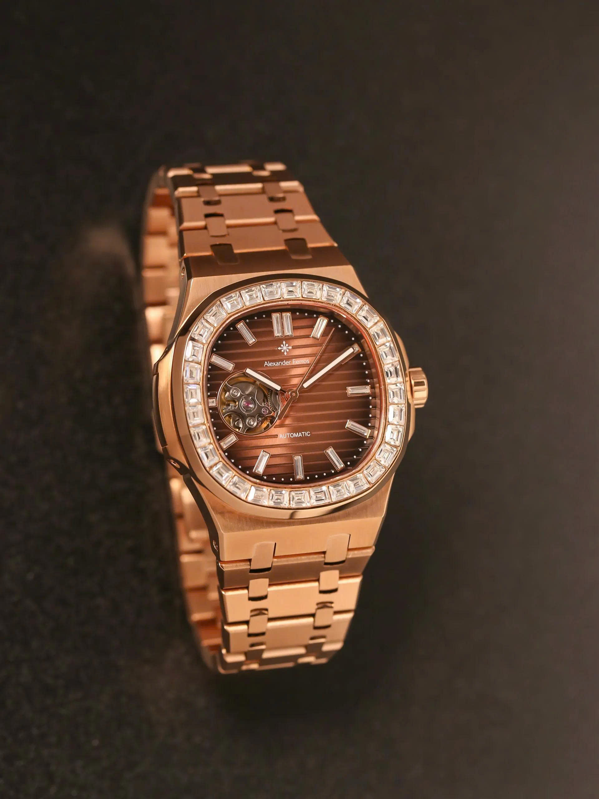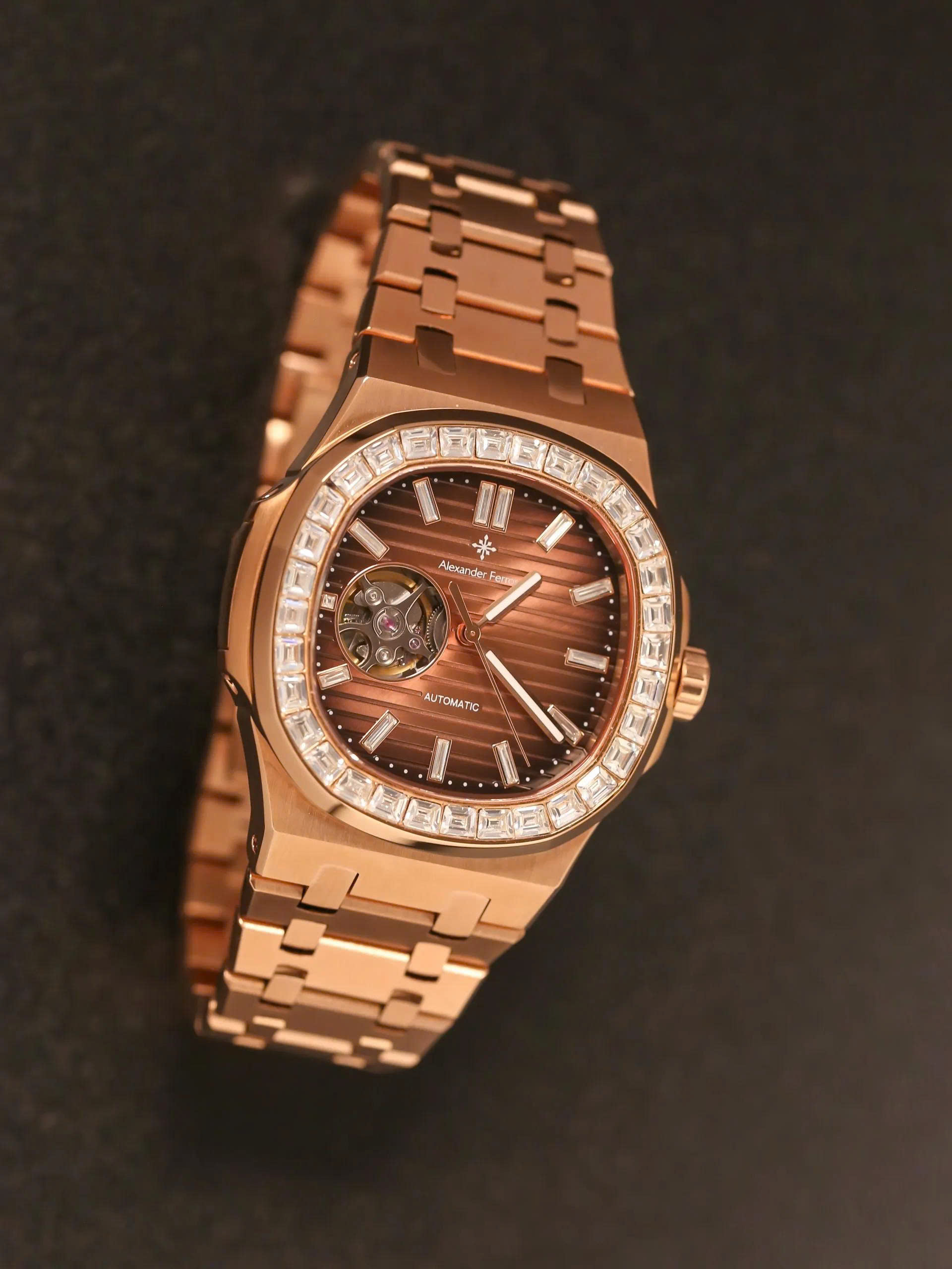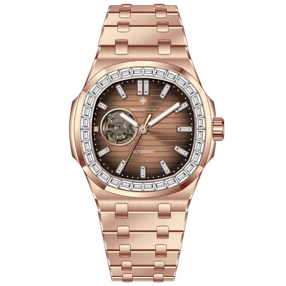 Vành đồng hồ được đính đá sang trọng, kết hợp hài hòa với tông màu tổng thể, nâng tầm giá trị thẩm mỹ và phong cách. Với bộ máy chính xác và thiết kế tỉ mỉ đến từng chi tiết, Alexander Ferros 6091 không chỉ là phụ kiện thời trang mà còn là tuyên ngôn cá tính dành cho quý ông thành đạt.