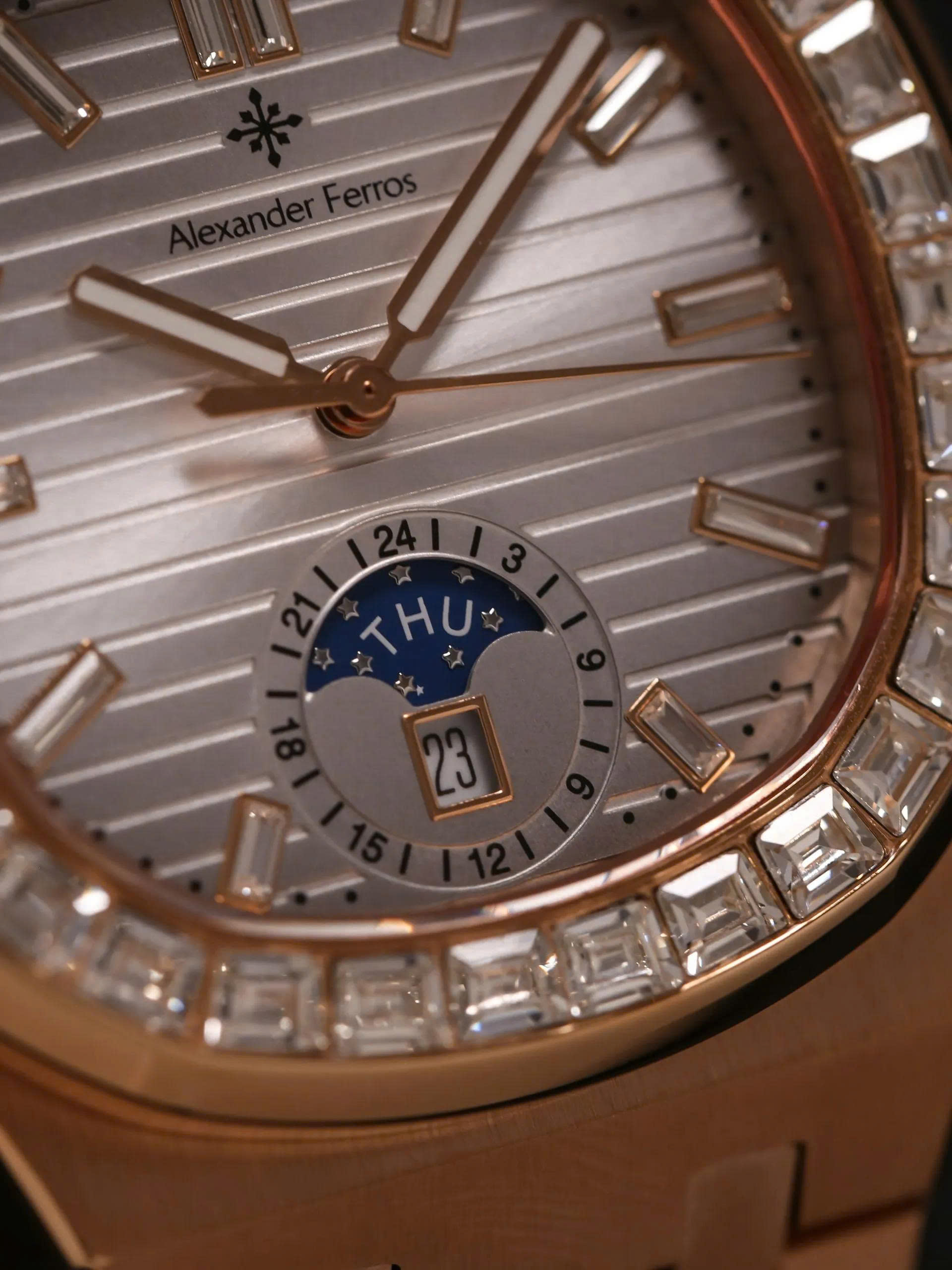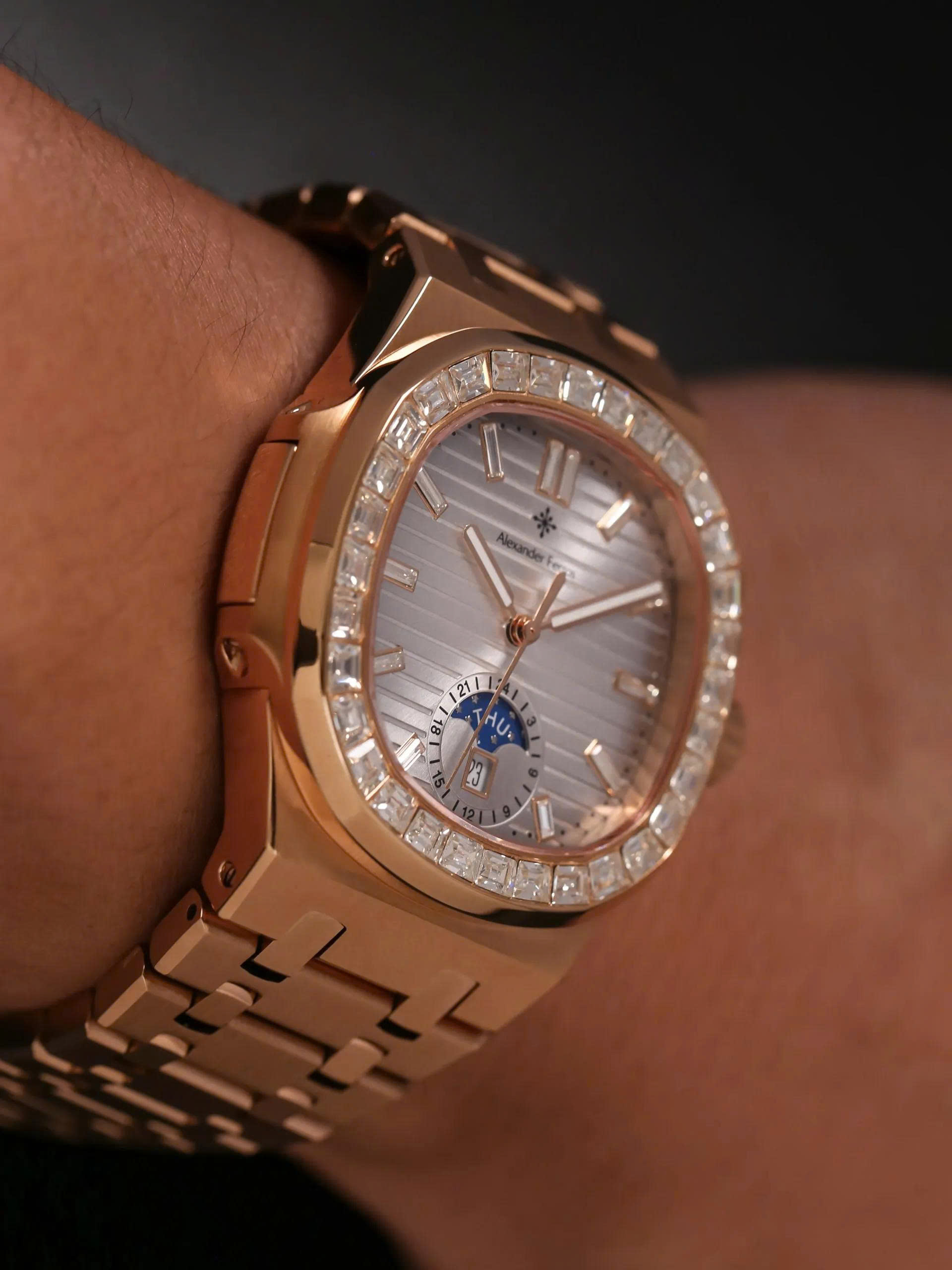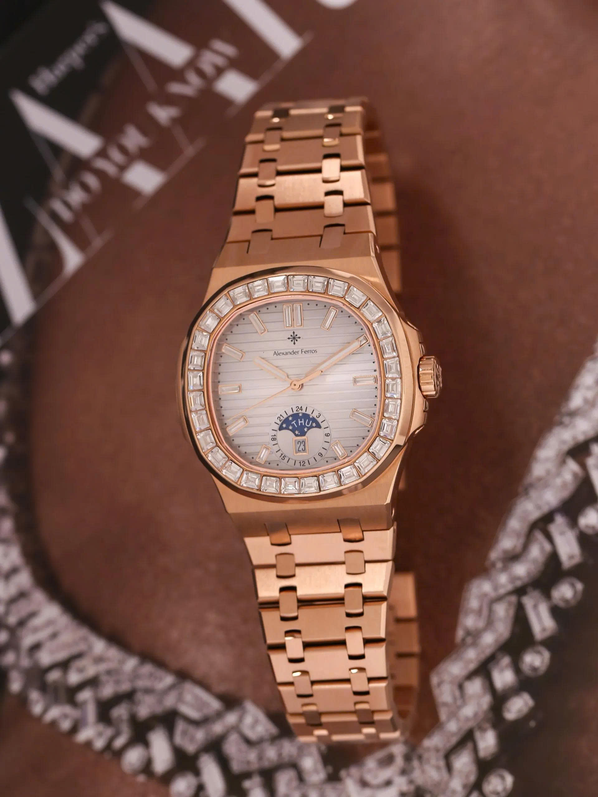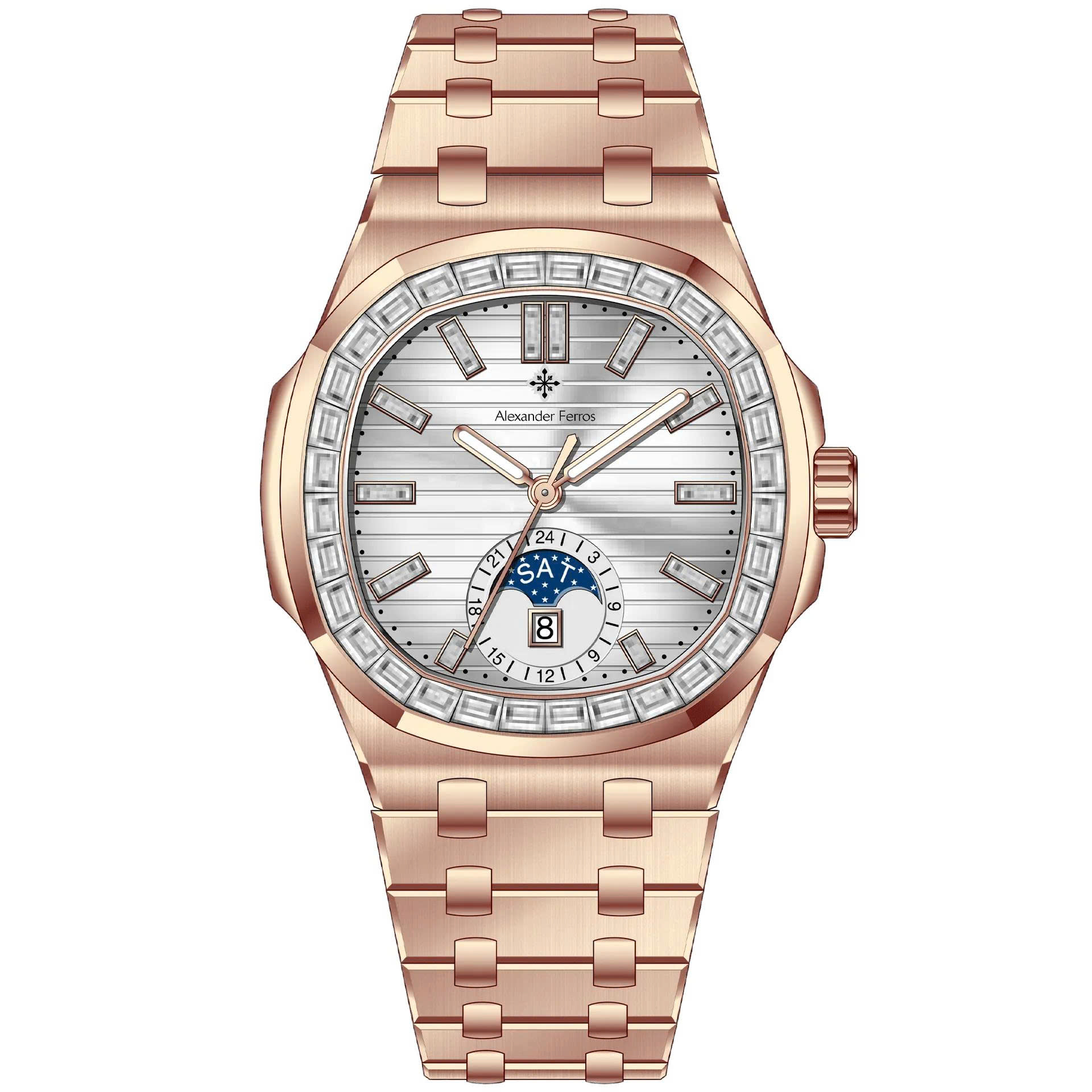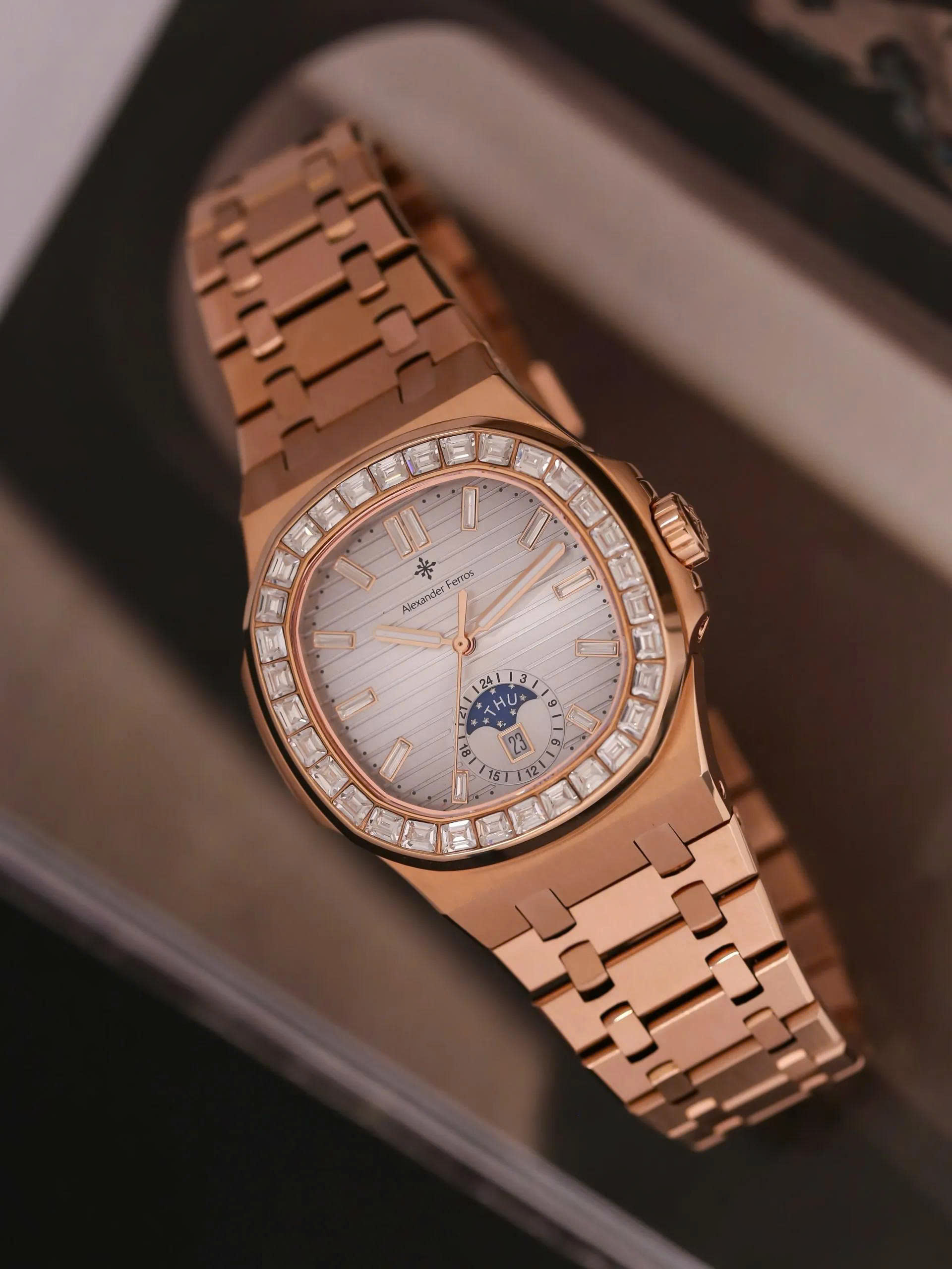 Mang phong cách đậm chất châu Âu, Alexander Ferros 6111 là biểu tượng của sự lịch lãm hiện đại. Mỗi chi tiết đều được hoàn thiện chỉn chu, từ bộ máy ổn định đến kiểu dáng nam tính.