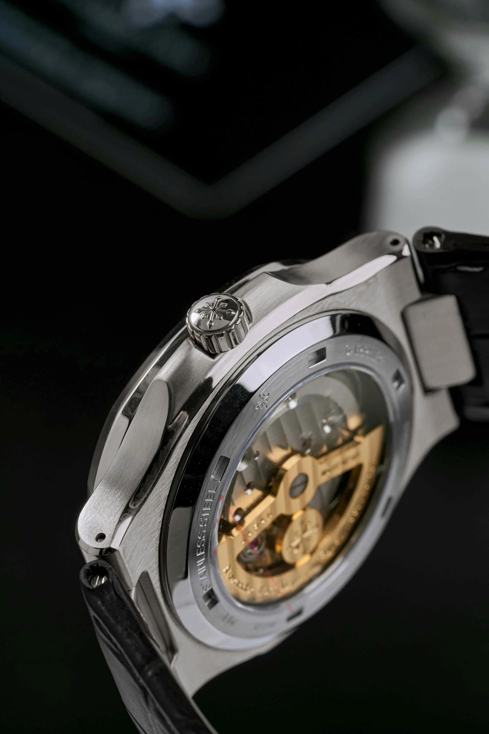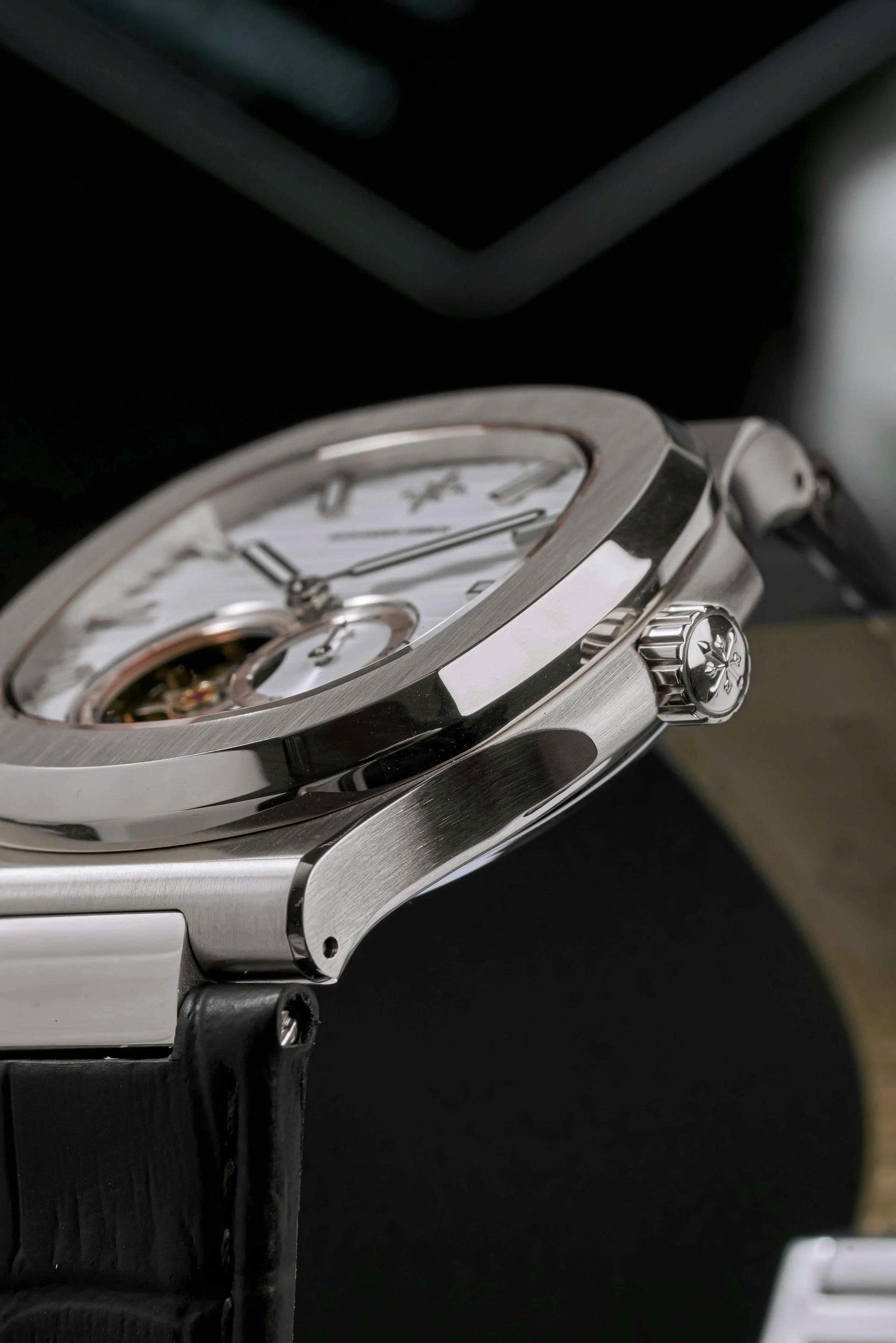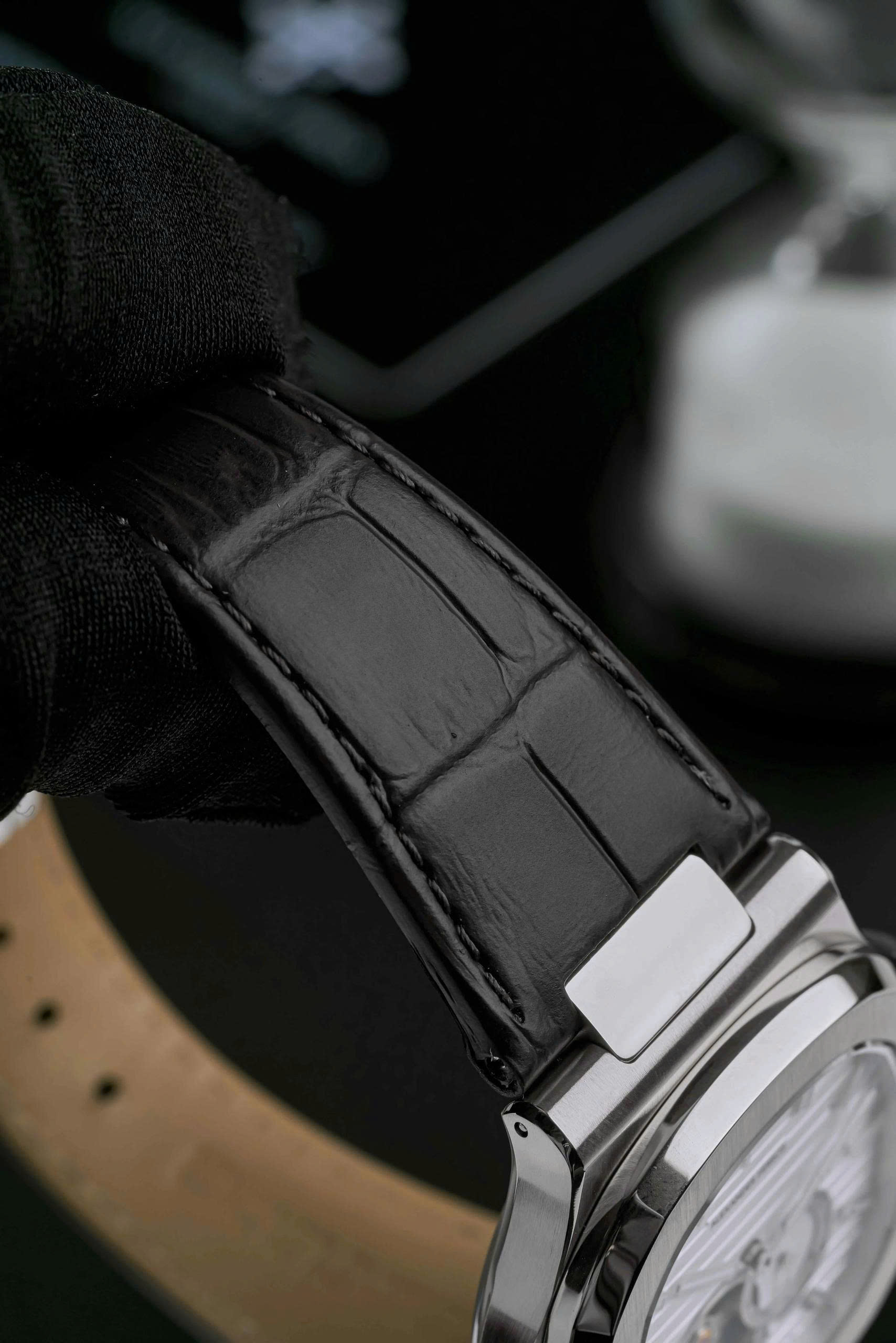 Nổi bật là cửa sổ open-heart góc 6h để lộ chuyển động cơ học tinh xảo cùng mặt phụ, cho thấy sự chỉn chu trong từng chi tiết. Cọc số và kim được chế tác sắc nét, phủ dạ quang giúp dễ dàng quan sát trong điều kiện thiếu sáng.
