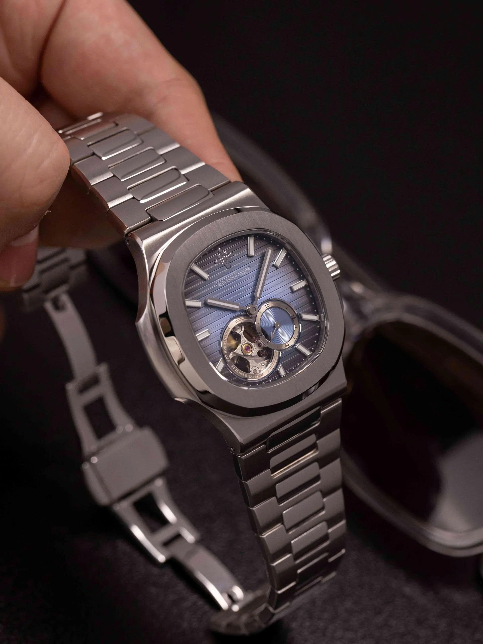 Alexander Ferros 6312 là sự kết hợp hài hòa giữa tinh hoa cơ khí và gu thẩm mỹ đương đại. Với thiết kế vỏ thép không gỉ sang trọng, mặt số xanh lam được trang trí bằng các đường kẻ ngang tạo chiều sâu thị giác, mẫu đồng hồ này mang đến cảm giác trẻ trung nhưng vẫn đầy đẳng cấp.