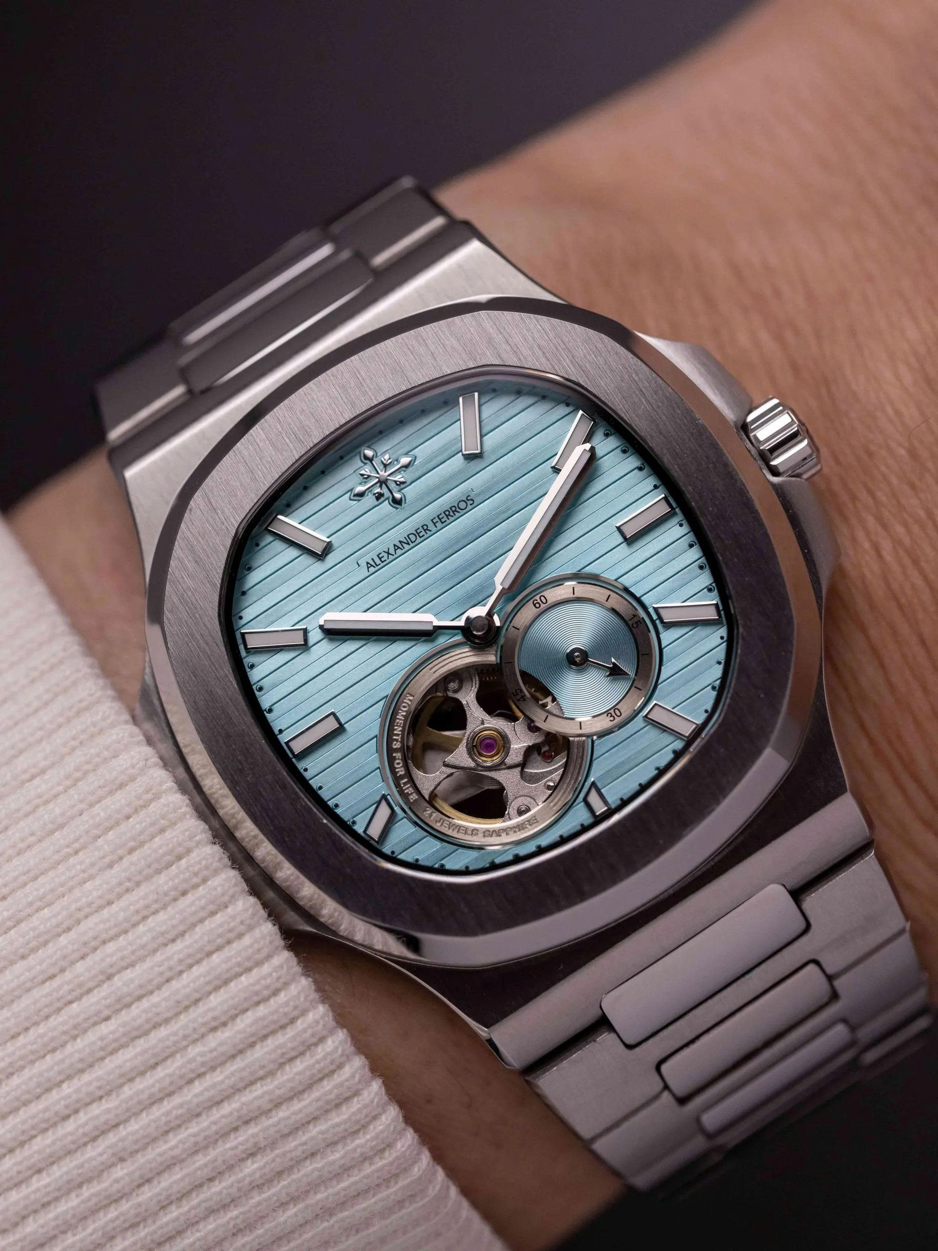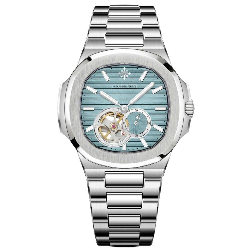 Alexander Ferros 6312 là sự kết hợp hài hòa giữa tinh hoa cơ khí và gu thẩm mỹ đương đại. Với thiết kế vỏ thép không gỉ sang trọng, mặt số xanh lam được trang trí bằng các đường kẻ ngang tạo chiều sâu thị giác, mẫu đồng hồ này mang đến cảm giác trẻ trung nhưng vẫn đầy đẳng cấp.