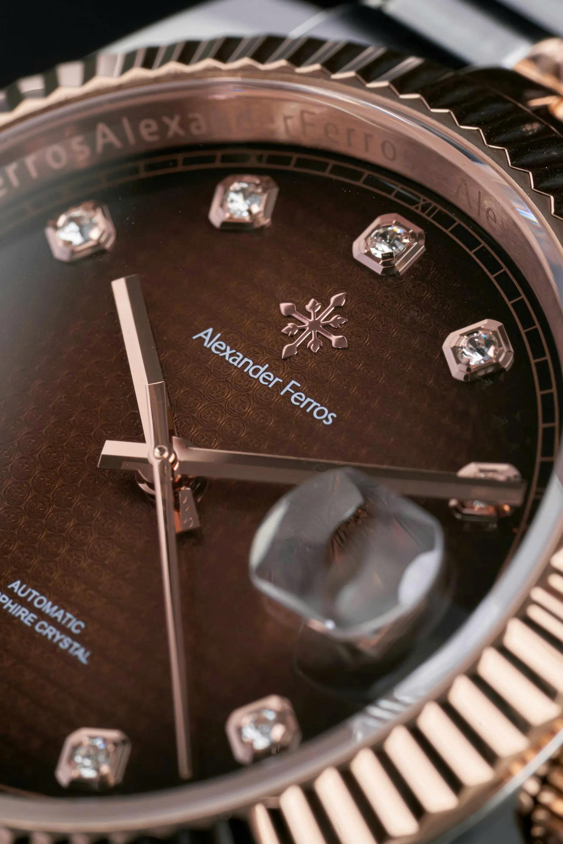 Alexander Ferros 8032D được chế tác tỉ mỉ từ chất liệu cao cấp, mang phong cách hiện đại và cuốn hút. Nhiều tùy chọn màu sắc mặt số giúp sản phẩm dễ dàng kết hợp với trang phục, thể hiện gu thẩm mỹ và phong cách riêng của người đeo