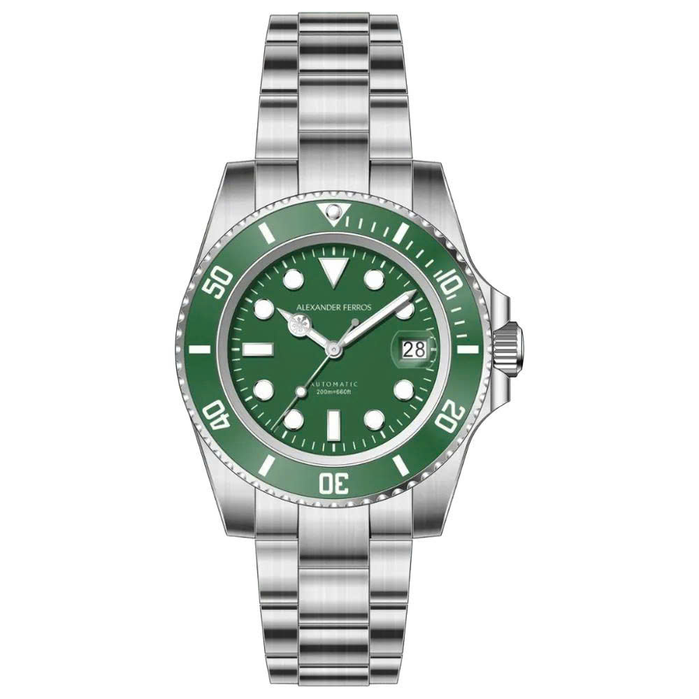 Mang đậm hơi thở của những chiếc đồng hồ lặn trứ danh, Alexander Ferros 8352 là sự kết hợp hoàn hảo giữa ngoại hình mạnh mẽ, nam tính và khả năng vận hành bền bỉ. Đây là cỗ máy thời gian lý tưởng cho các quý ông yêu thích phong cách thể thao năng động hoặc thường xuyên tiếp xúc với nước.