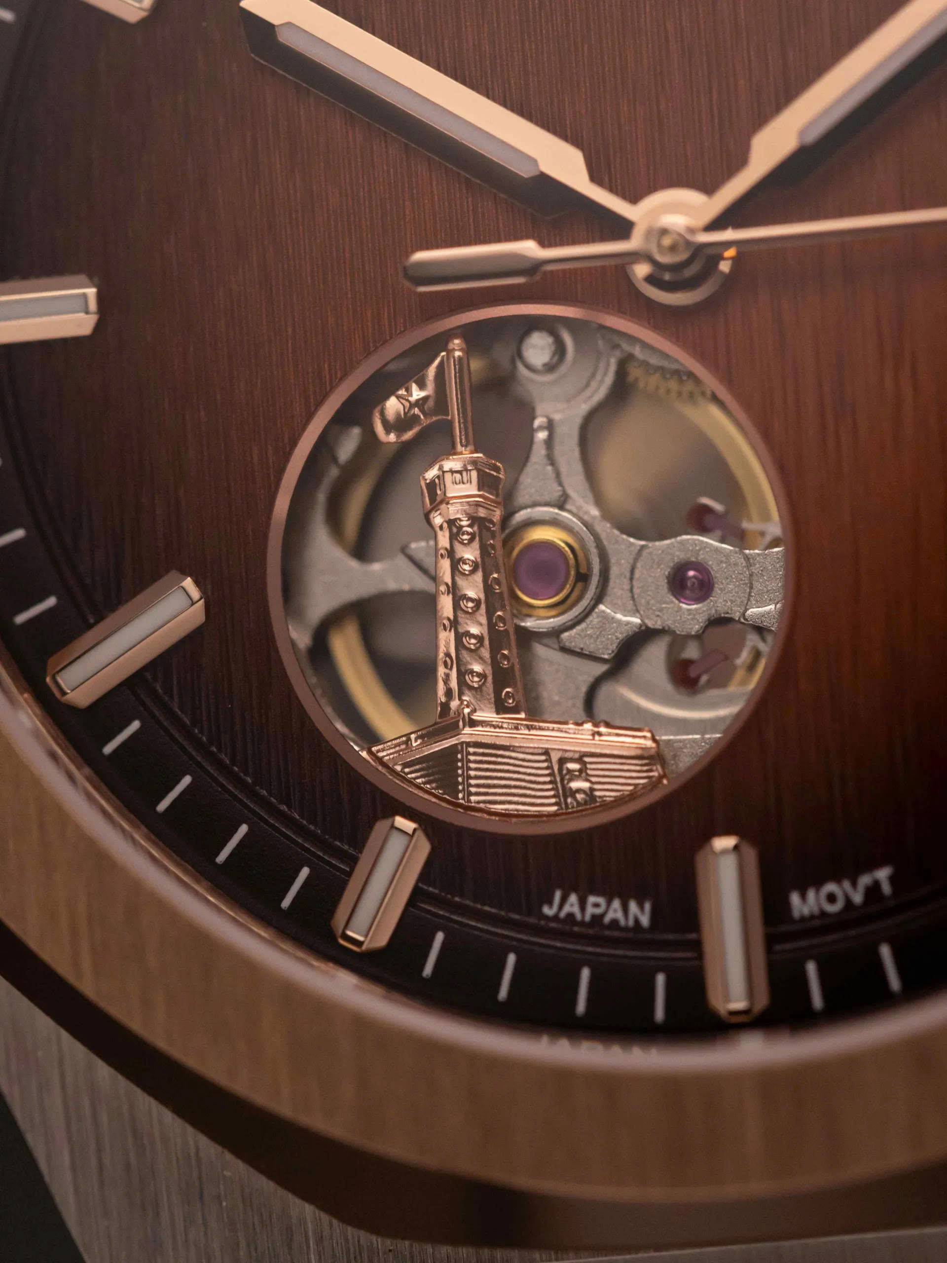 Alexander Ferros 9292 là mẫu đồng hồ nam nổi bật với phong cách thể thao lịch lãm và thiết kế hiện đại. Mặt số với nhiều phiên bản màu được trang trí bằng họa tiết vân gỗ độc đáo, kết hợp cùng bộ kim và cọc số dạng vạch phủ dạ quang, giúp dễ dàng quan sát giờ trong điều kiện thiếu sáng. Điểm đặc biệt của mẫu này là thiết kế Open heart góc 7h kết hợp với hình ảnh Cột cờ Dinh Độc Lập mang bản sắc riêng.