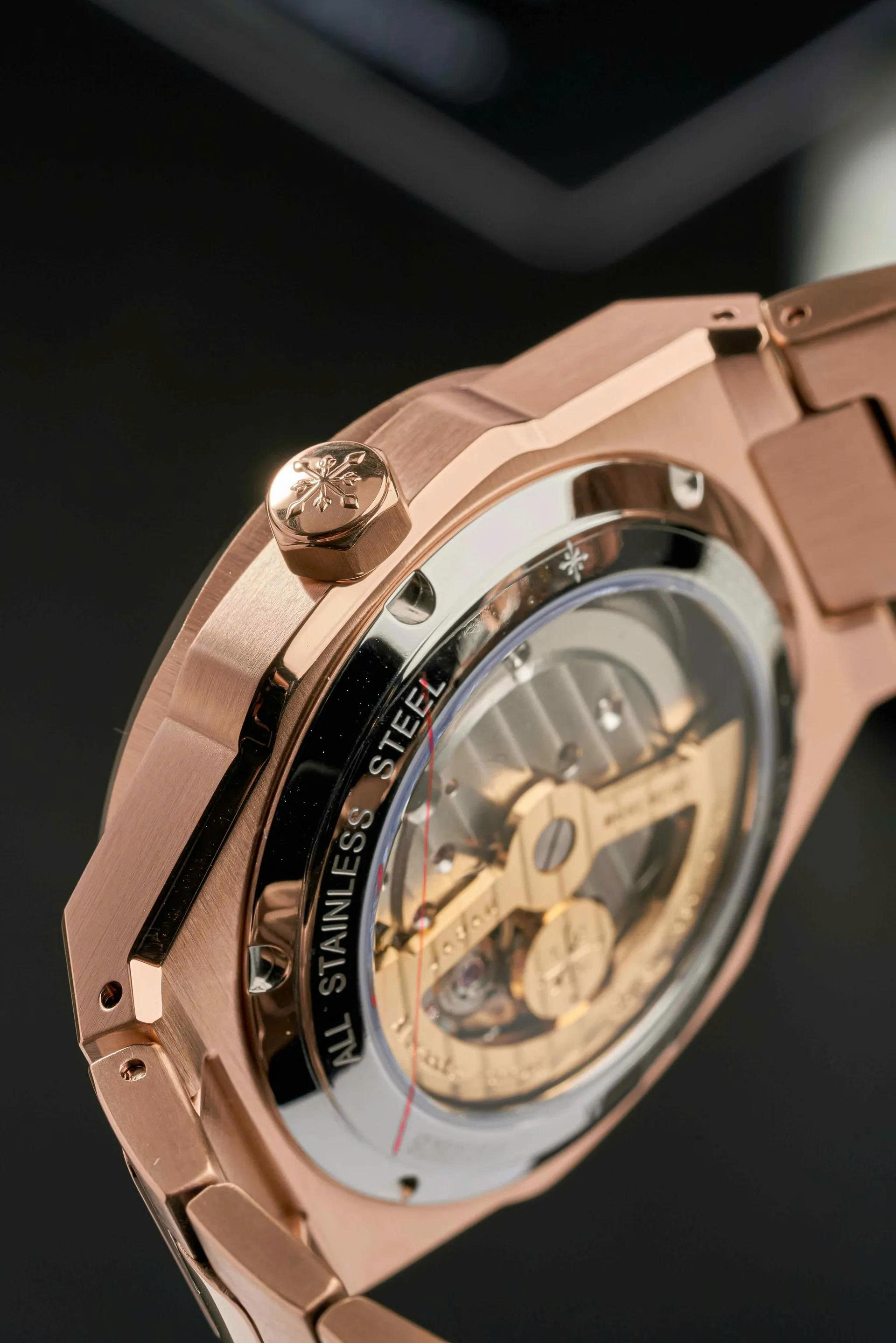 Vỏ được chế tác từ thép không gỉ cao cấp, mang đến sự bền bỉ và cảm giác chắc chắn khi đeo. Viền bezel cách điệu với các đường cắt góc cạnh, tăng thêm vẻ nam tính và năng động.