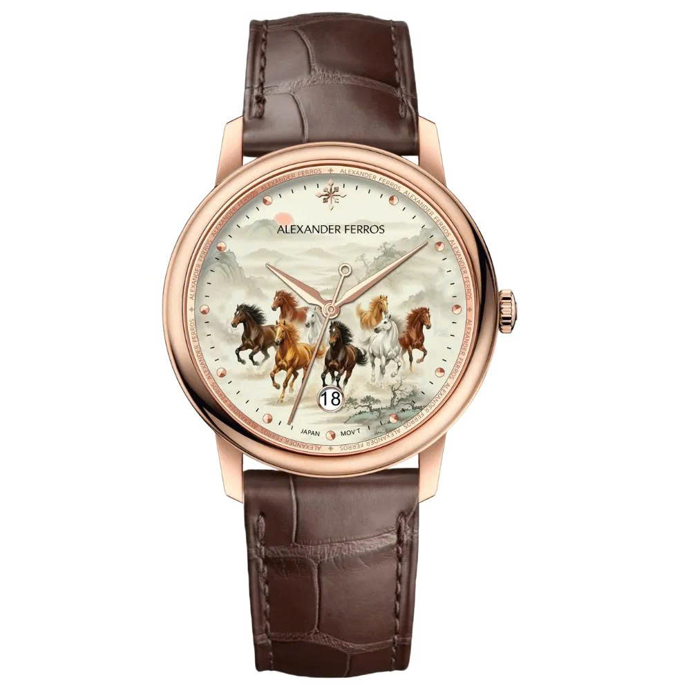 Siêu phẩm đặc biệt mang tên “Bát Mã Truy Phong” là lời chào năm mới đầy khí thế từ Alexander Ferros – lấy cảm hứng từ hình tượng 8 con ngựa phi nước đại, biểu trưng cho phát tài, phát lộc, may mắn và thành công.