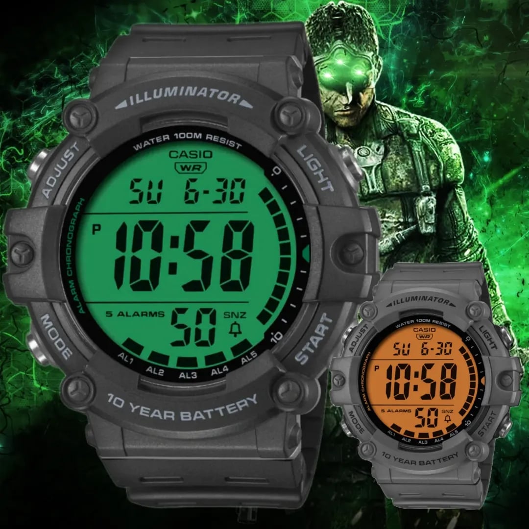 Những mẫu đồng hồ kỹ thuật số đa chức năng này được trang bị màn hình LCD lớn, giúp hiển thị rõ ràng và dễ quan sát. Bên cạnh các chức năng bấm giờ, báo thức và nhiều tiện ích khác, sản phẩm sở hữu khả năng chống nước 100 mét, tuổi thọ pin lên đến 10 năm và trang bị đèn nền LED.