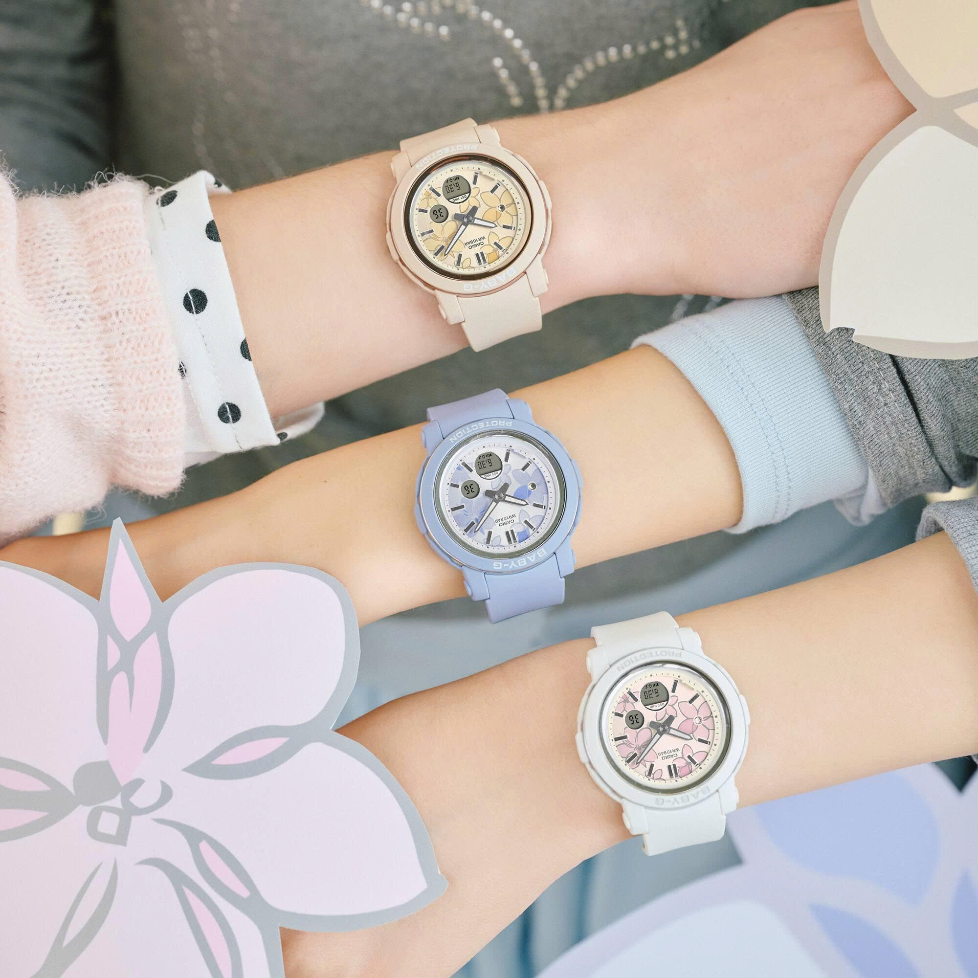 Phong cách giản dị, bền bỉ năng động — một chiếc BABY-G chống va đập khoác lên mình những bông hoa tinh tế, xinh xắn và mạnh mẽ. BGA-290, với vỏ tròn và mặt đồng hồ rộng cho khả năng đọc tối ưu, sở hữu mặt số được trang trí họa tiết hoa thanh lịch, mang đến nét quyến rũ cho cổ tay bạn. Một viên pha lê ở giữa bông hoa tại vị trí vạch chỉ số 9 giờ càng thêm lấp lánh, trong khi lớp hoàn thiện lắng đọng hơi nước của vòng gờ mang lại kết cấu kim loại tuyệt đẹp. Về chức năng, BGA-290FL sở hữu cấu trúc chống va đập, khả năng chống nước ở độ sâu 100 mét giúp bạn an tâm khi bơi lội, cùng nhiều tính năng khác.