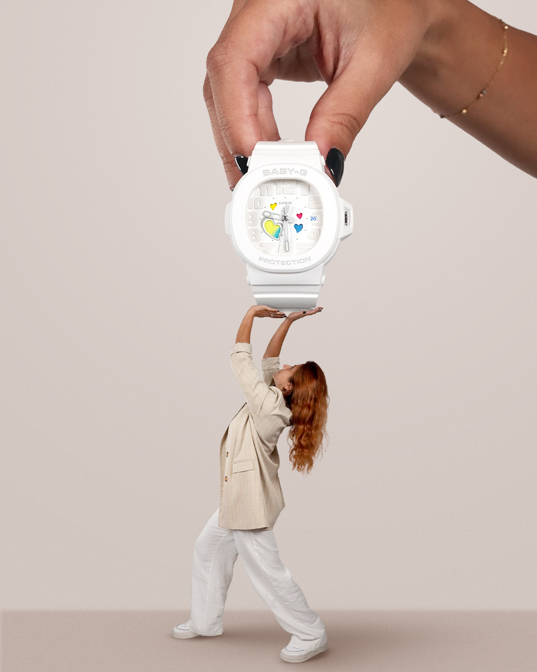 Để thỏa mãn khía cạnh vui tươi của bạn — một chiếc đồng hồ kim BABY-G có họa tiết trái tim đổi màu.