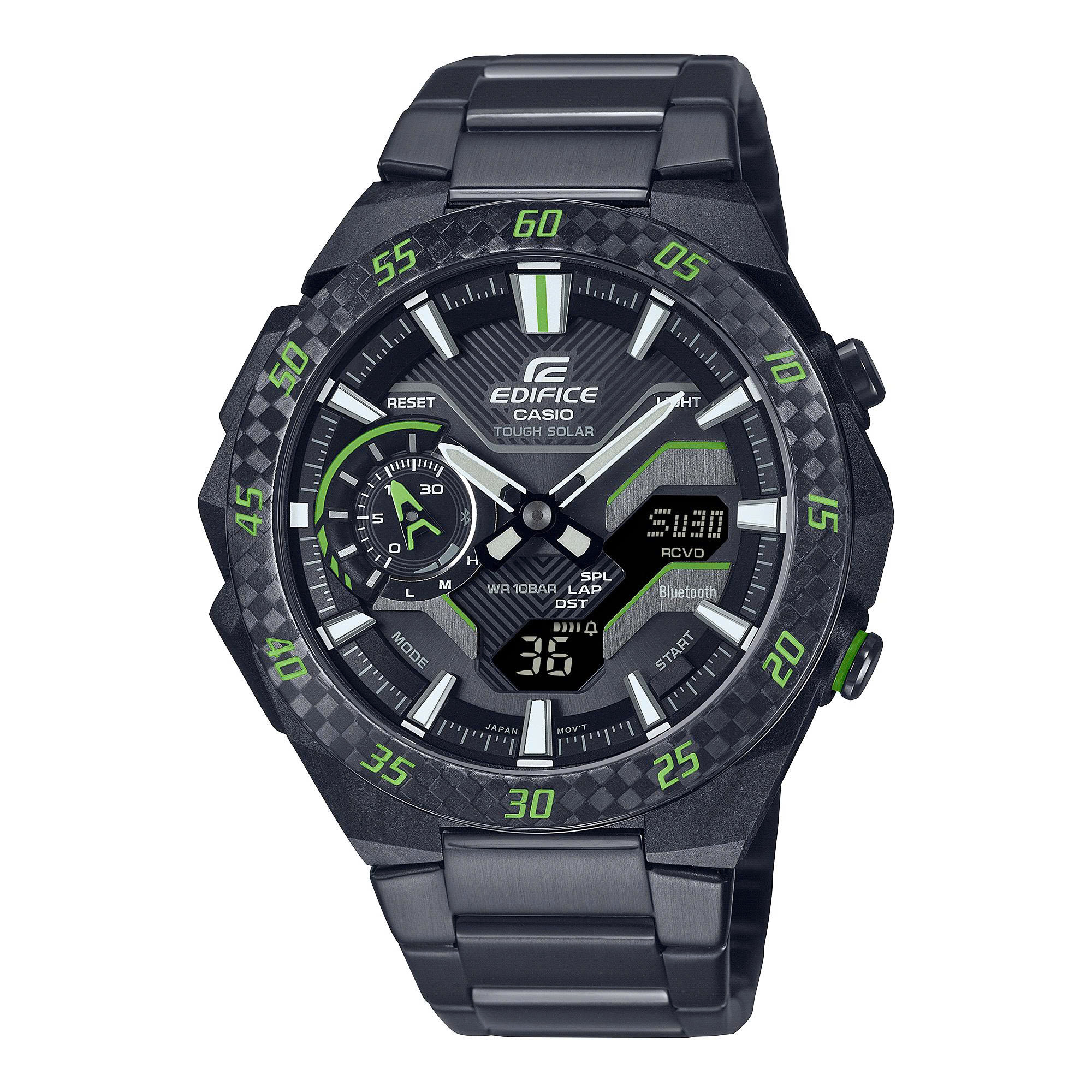 Giới thiệu những biến thể mới của EDIFICE WINDFLOW ECB-2200, một chiếc đồng hồ được thiết kế để gợi lên luồng gió thổi mạnh từ một chiếc xe đua công thức. Vỏ nhựa gia cố bằng sợi carbon, gờ làm bằng sợi carbon và dây đeo bằng thép không gỉ mạ ion đen được kết hợp với những điểm nhấn màu vàng hoặc xanh lá gợi nhớ đến đường đua chuyên nghiệp.
