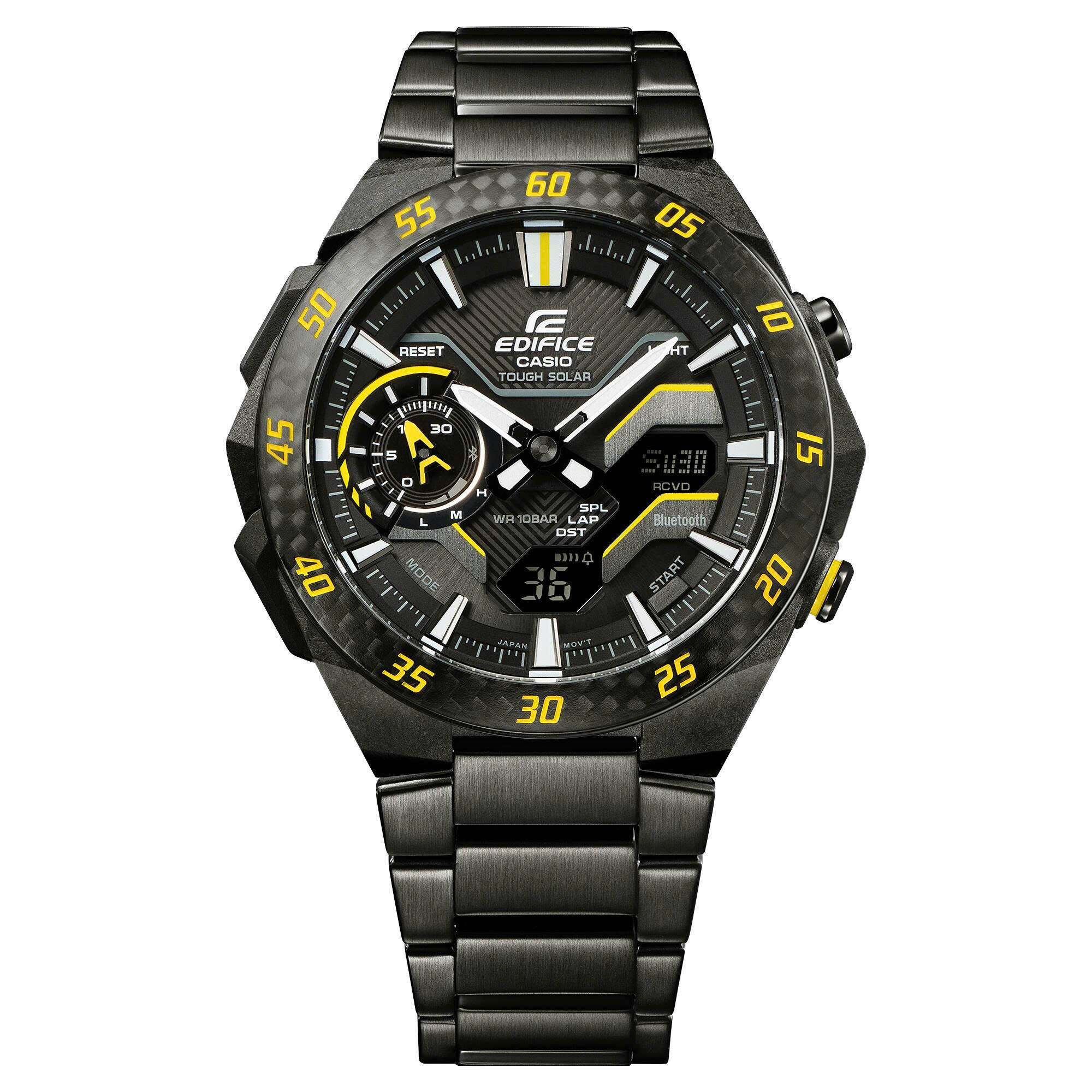 Giới thiệu những biến thể mới của EDIFICE WINDFLOW ECB-2200, một chiếc đồng hồ được thiết kế để gợi lên luồng gió thổi mạnh từ một chiếc xe đua công thức. Vỏ nhựa gia cố bằng sợi carbon, gờ làm bằng sợi carbon và dây đeo bằng thép không gỉ mạ ion đen được kết hợp với những điểm nhấn màu vàng hoặc xanh lá gợi nhớ đến đường đua chuyên nghiệp.