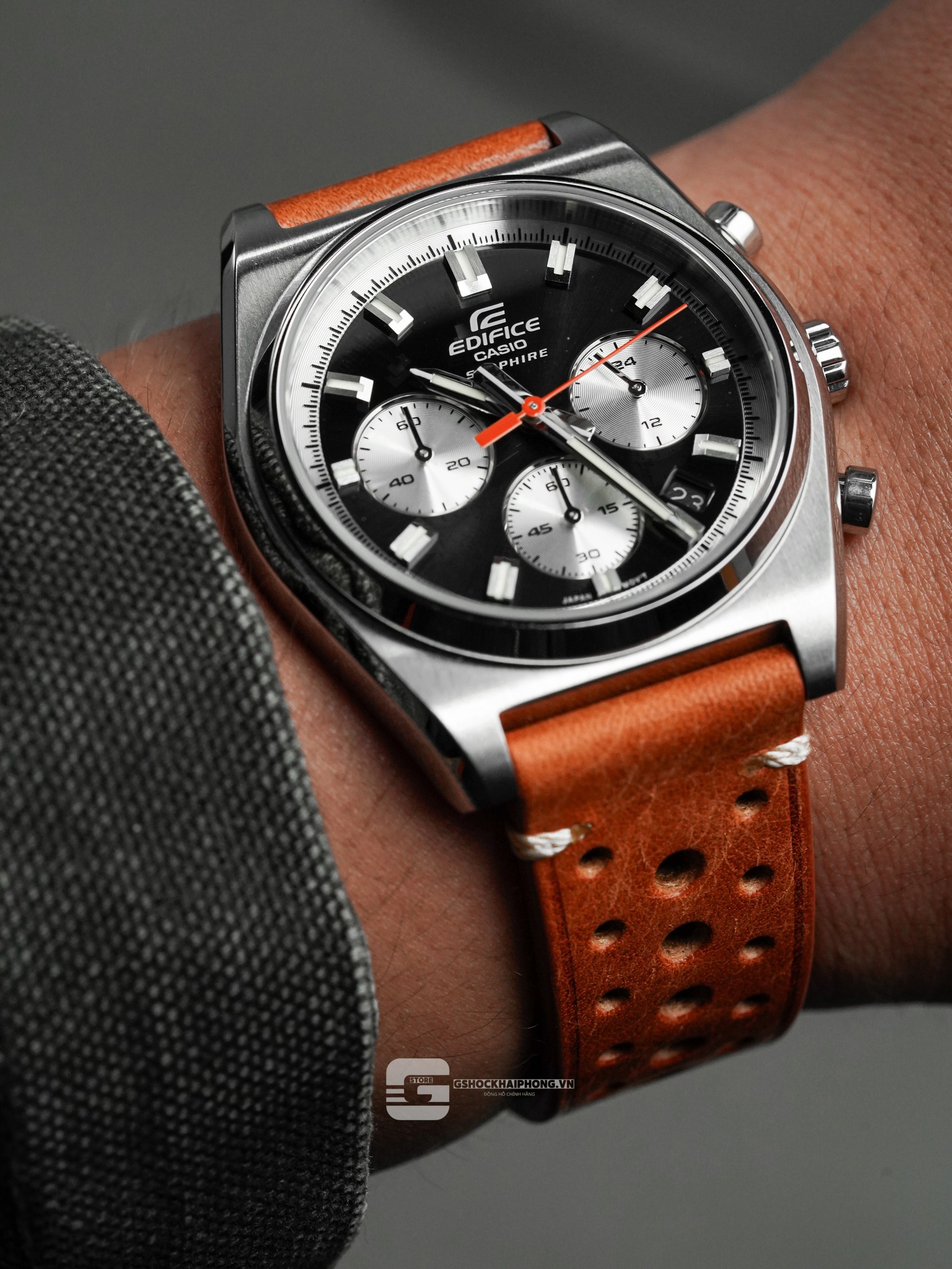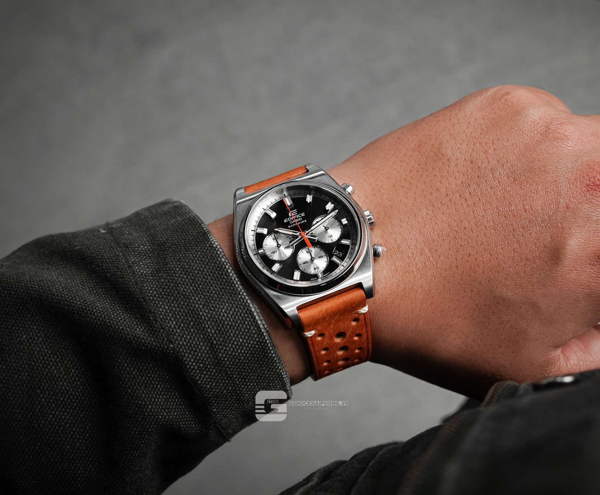 Giới thiệu mẫu đồng hồ thể thao bấm giờ EDIFICE lấy cảm hứng từ chiếc xe thể thao cổ điển.Kim chỉ số nổi bật kết hợp bố cục mặt số 3-6-9 huyền thoại trong một thiết kế thể thao vượt thời gian. Đường kính nhỏ hơn của vỏ máy mang đến vẻ ngoài thanh lịch cho tốc độ tuyệt đối.Với thiết kế tinh thể sapphire, vỏ máy bằng thép không gỉ và dây đeo bằng thép không gỉ bền bỉ, chiếc đồng hồ này có khả năng chống nước ở độ sâu lên đến 100m.Chiếc đồng hồ bấm giờ cổ điển mang hơi hướng thể thao này sẽ phù hợp cả trong sinh hoạt thường nhật lẫn môi trường công sở.