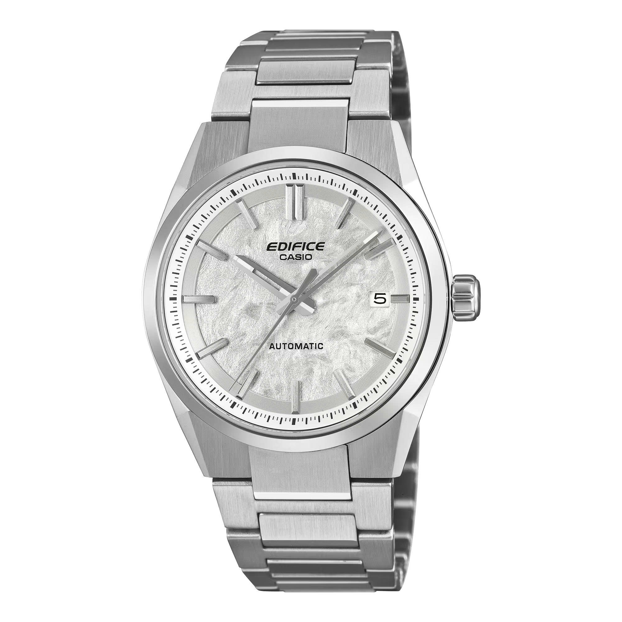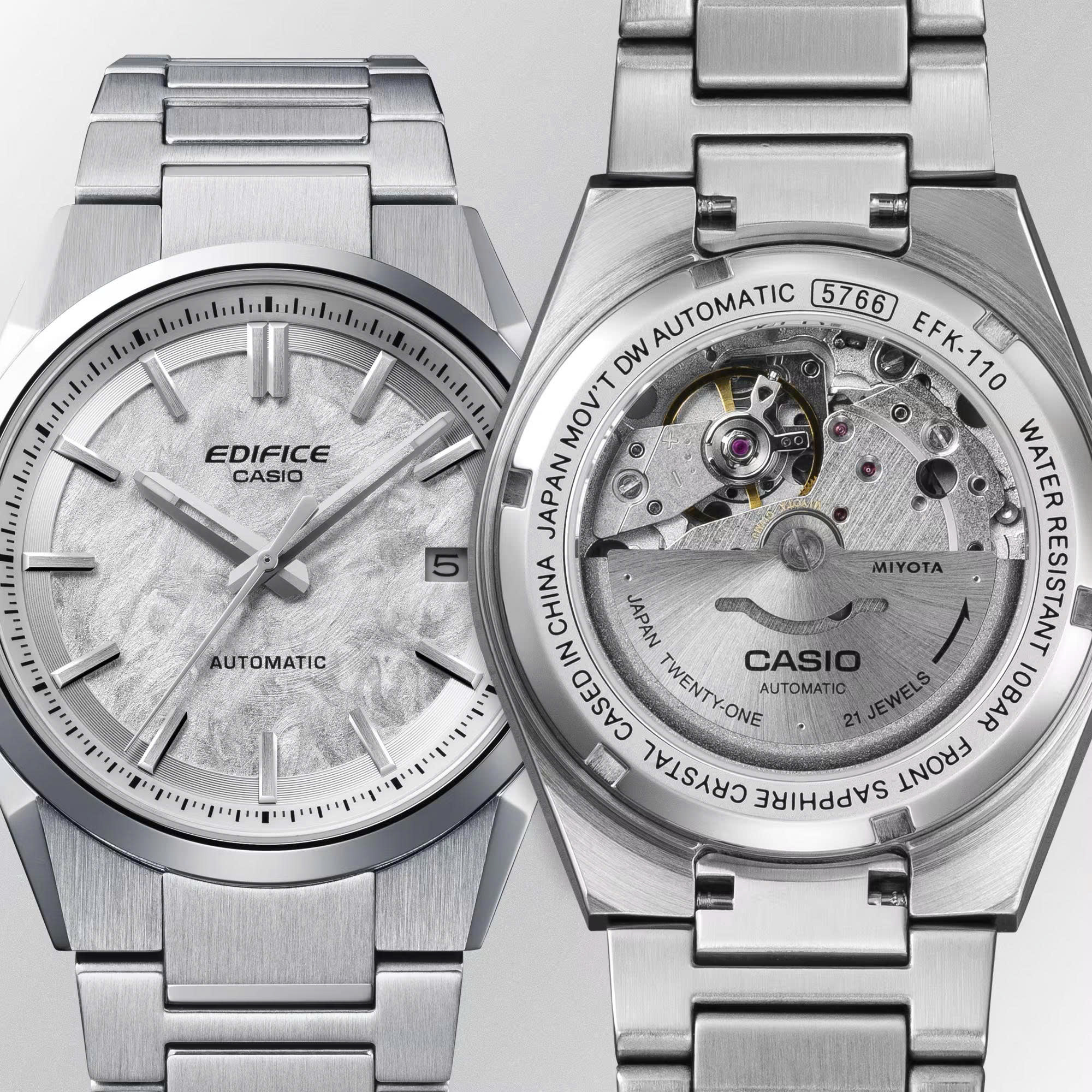 CASIO EDIFICE hân hạnh giới thiệu mẫu đồng hồ EFK-110D, món đồ yêu thích của những người đam mê xe thể thao. Chiếc đồng hồ tự động ba kim tuyệt đẹp này mang đến phong cách tinh tế, sang trọng cho cổ tay bạn. Thiết kế đồng hồ thể thao nhưng vẫn thanh lịch với vỏ mỏng, nhỏ gọn chỉ 38mm và mặt số được chế tác tỉ mỉ bằng kỹ thuật điện phân đặc biệt. Mặt kính sapphire trong suốt, chống trầy xước mang lại khả năng hiển thị rõ nét, trong khi các vạch chỉ giờ nổi, vành bezel và vỏ sắc nét hoàn thiện thiết kế năng động nhưng vẫn tinh tế. Bộ máy tự động được chế tác tại Nhật Bản cung cấp khả năng dự trữ năng lượng khoảng 42 giờ. Với mặt sau trong suốt cho phép bạn chiêm ngưỡng chuyển động tỉ mỉ của bộ máy, bạn sẽ thực sự hiểu được sức hấp dẫn độc đáo của một chiếc đồng hồ cơ khí. Khả năng chống nước lên đến 10 bar cho phép bạn tập trung vào những điều thú vị hơn, dù là các hoạt động ngoài trời, thể thao dưới nước hay chỉ đơn giản là tận hưởng cuộc sống thường nhật.