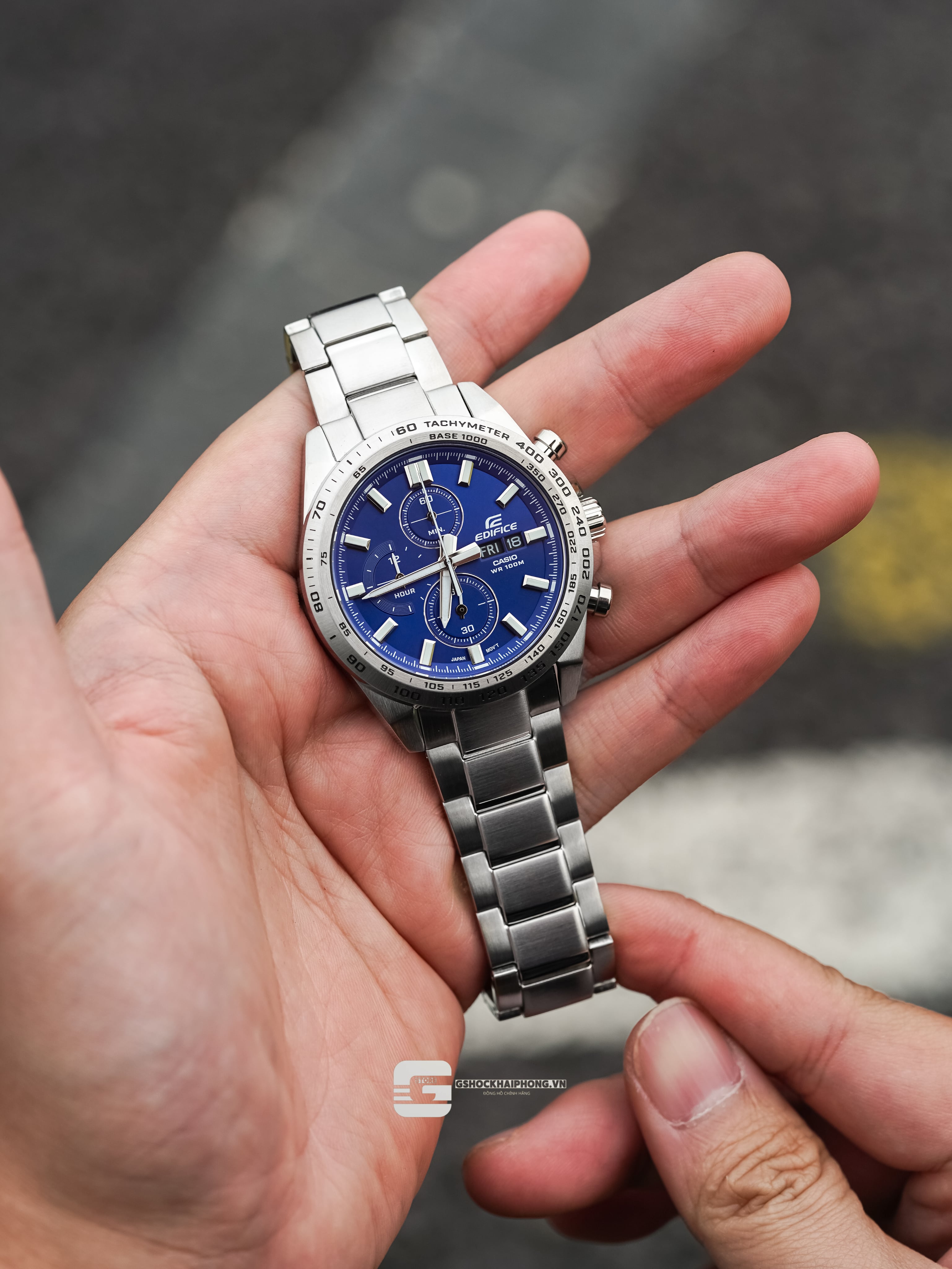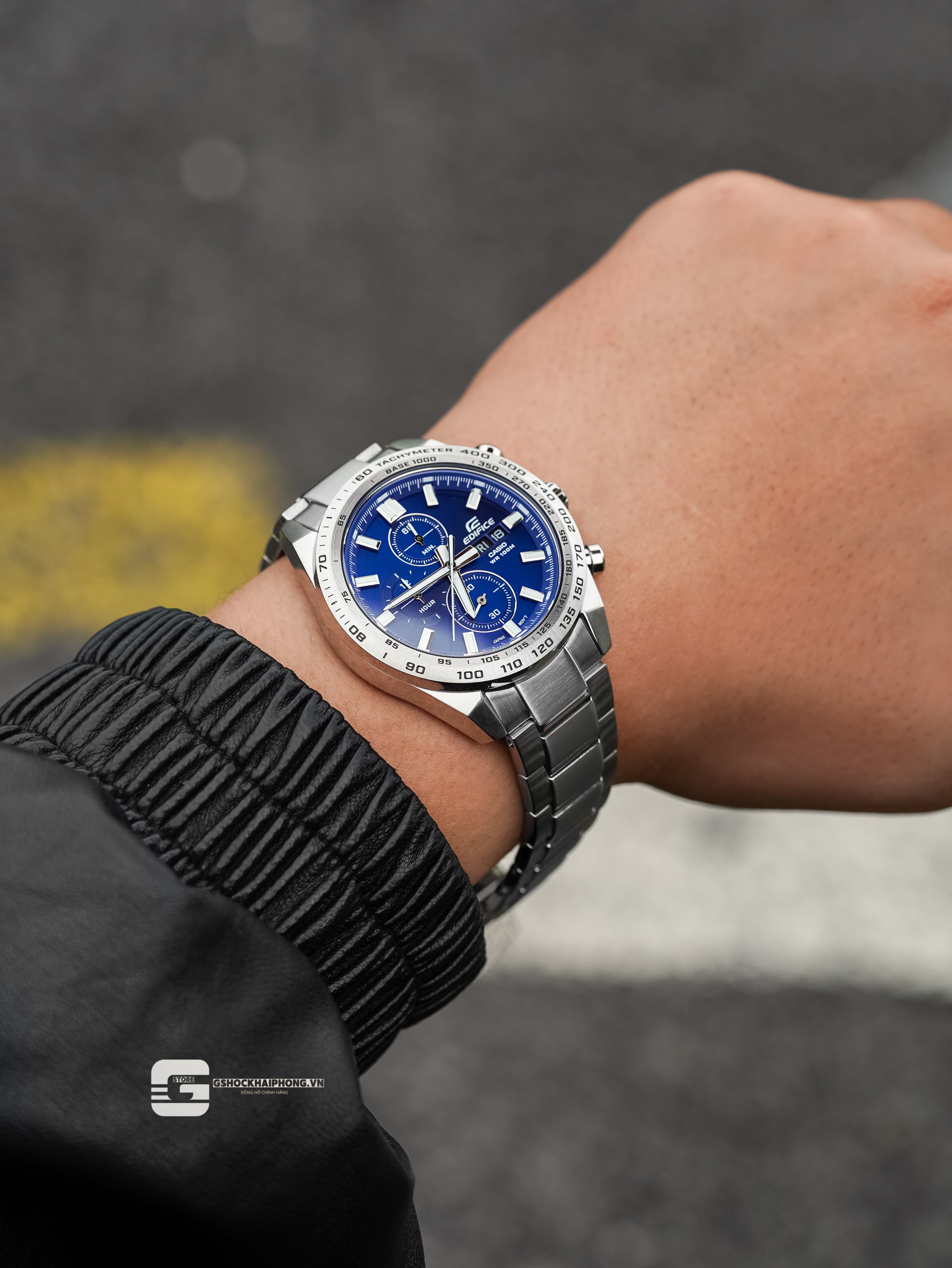 Thể hiện phong cách năng động, mạnh mẽ — đồng hồ ghi thời gian EDIFICE cổ điển trong một thiết kế tập trung vào thể thao. Kim giây có đường trung tâm màu xanh lá cây để nổi bật trên mặt số, với màn hình hiển thị thứ và ngày để tiện tham khảo.