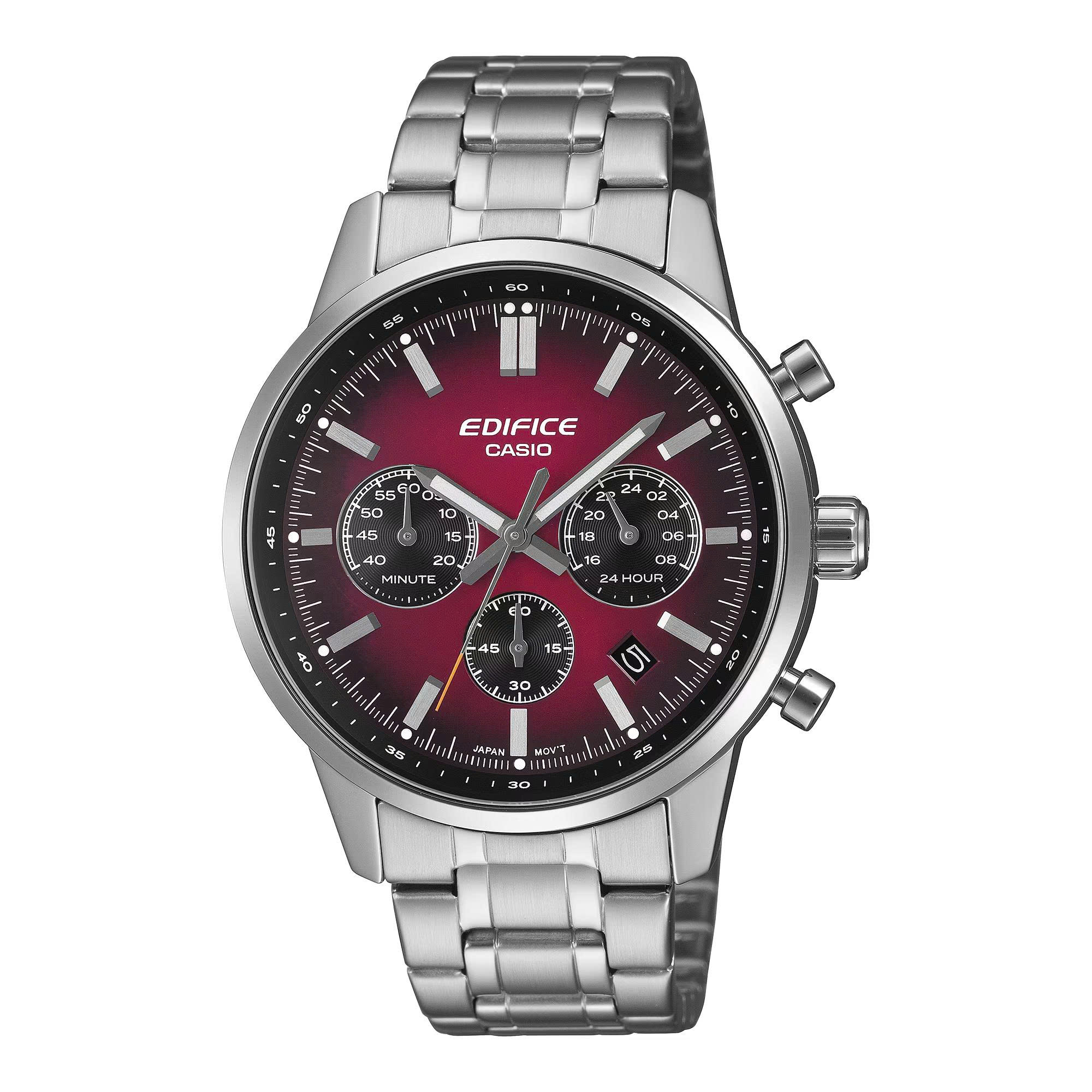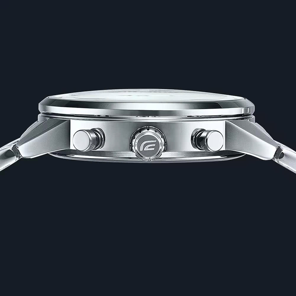 Chiếc đồng hồ EDIFICE này, lấy cảm hứng từ mặt kính lồi của những chiếc xe thể thao cổ điển, sở hữu vẻ ngoài vượt thời gian với mặt số chuyển màu.