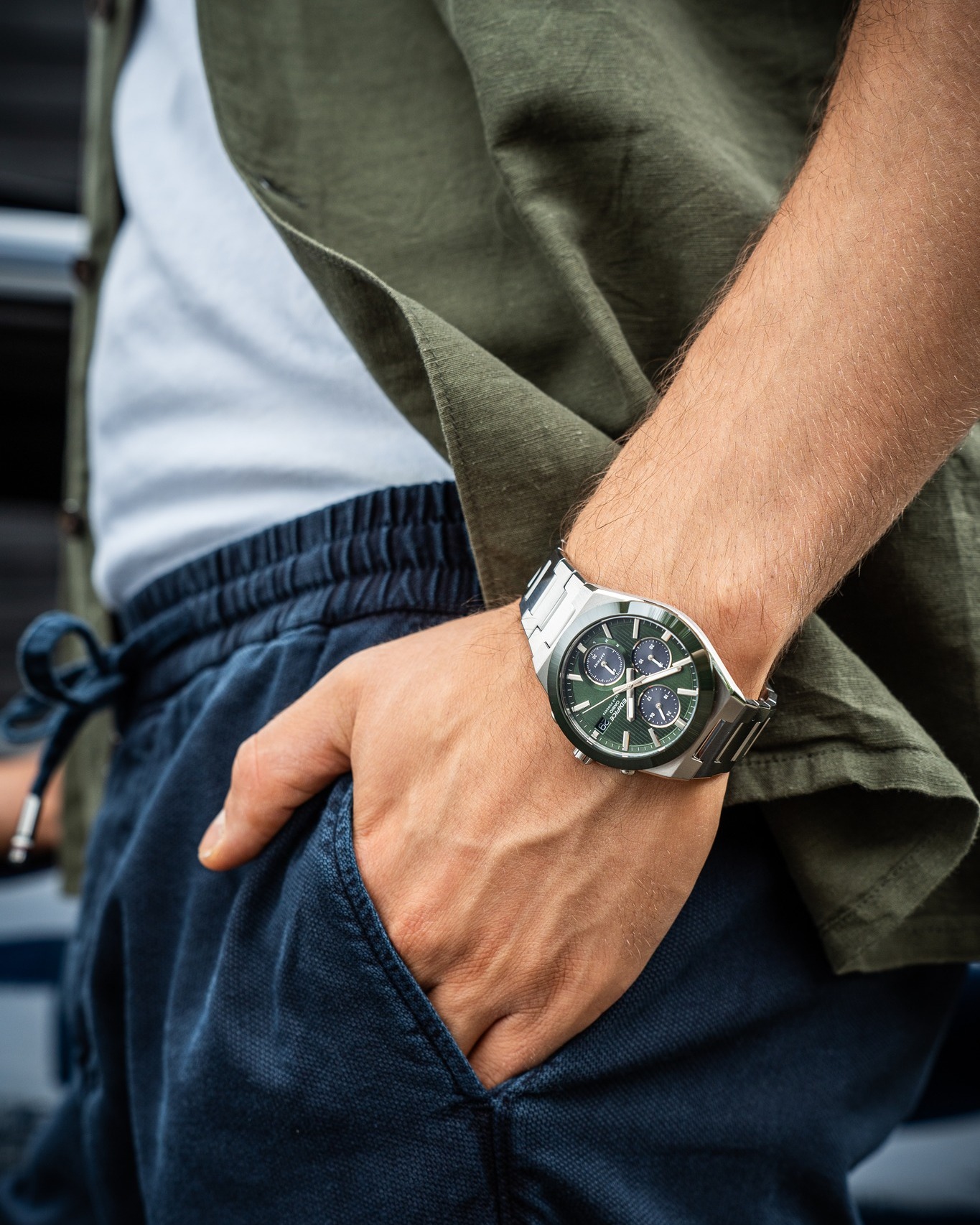 Giờ hiện hành thông thường:Đồng hồ kim: 3 kim (giờ, phút, giây), 3 mặt số (24 giờ, phút bấm giờ, giây bấm giờ)