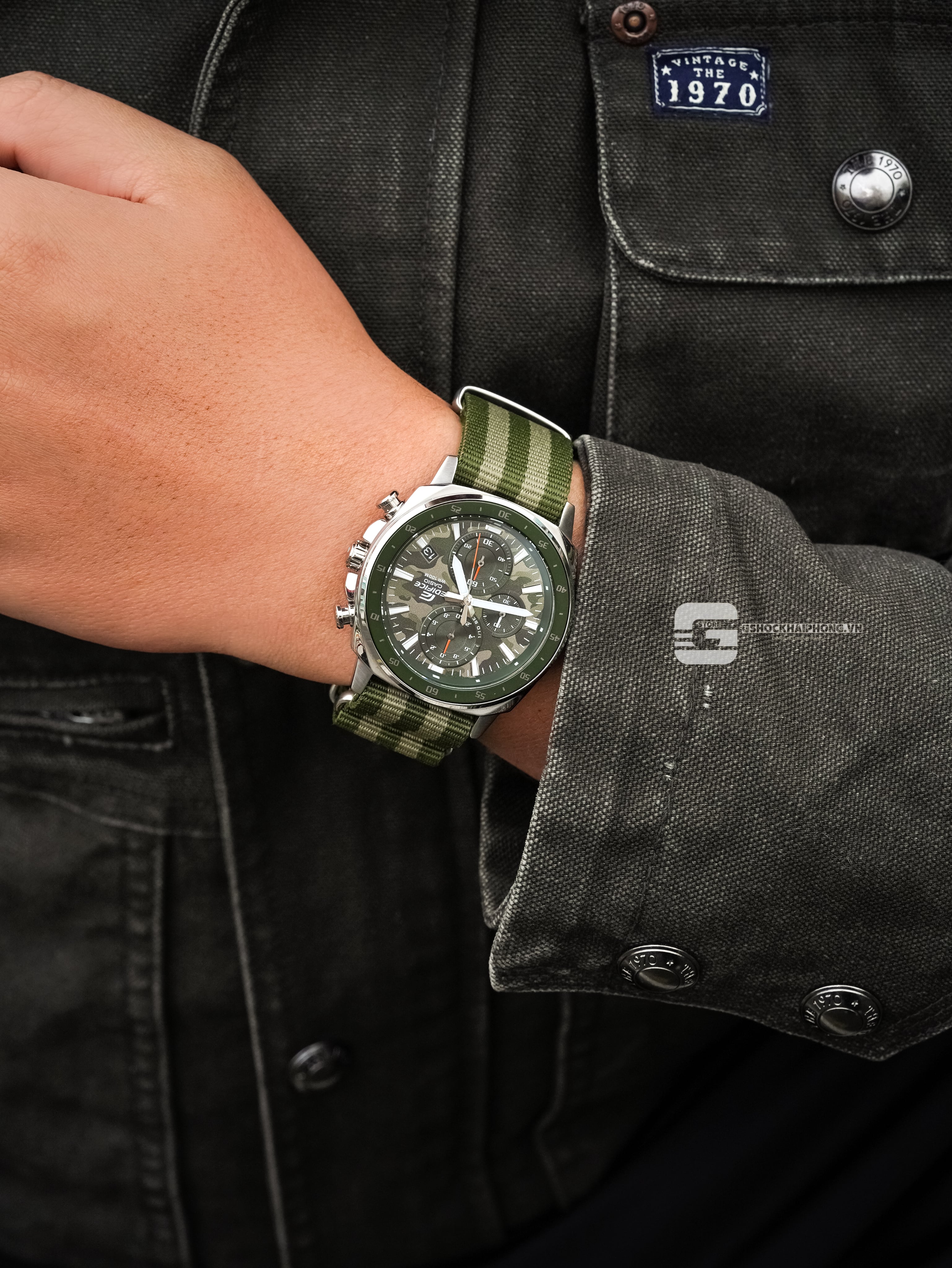 Đồng hồ bấm giờ EDIFICE cổ điển cỡ trung có sự kết hợp táo bạo giữa các chi tiết và thiết kế tinh xảo là sản phẩm sinh ra để dành cho bạn. Phong cách thiết kế đơn giản, gọn gàng kết hợp với mặt số hoạ tiết ngụy trang, lấy cảm hứng từ những chuyến phiêu lưu đầy trắc trở.