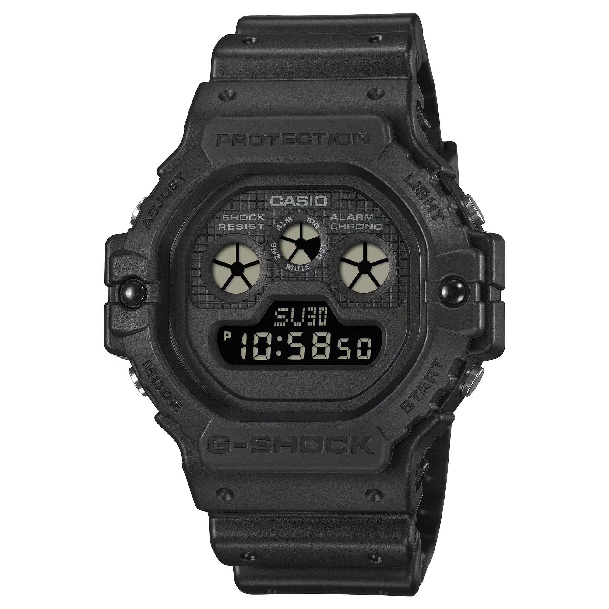 Để có phong cách retro thập niên 90, hãy chọn một chiếc G-SHOCK màu đen tuyền với lớp hoàn thiện mờ. Thiết kế dựa trên mẫu DW-5900 rất đa năng và phù hợp với nhiều phong cách — từ đường phố đến thời trang cao cấp, thậm chí cả thể thao. Ngoài các chức năng kinh điển như bấm giờ và hẹn giờ, chiếc đồng hồ còn mang đến nhiều tính năng thiết thực hơn với đèn nền LED độ sáng cao và pin có tuổi thọ 10 năm, bạn sẽ không phải lo lắng về việc hết pin trong thời gian dài.