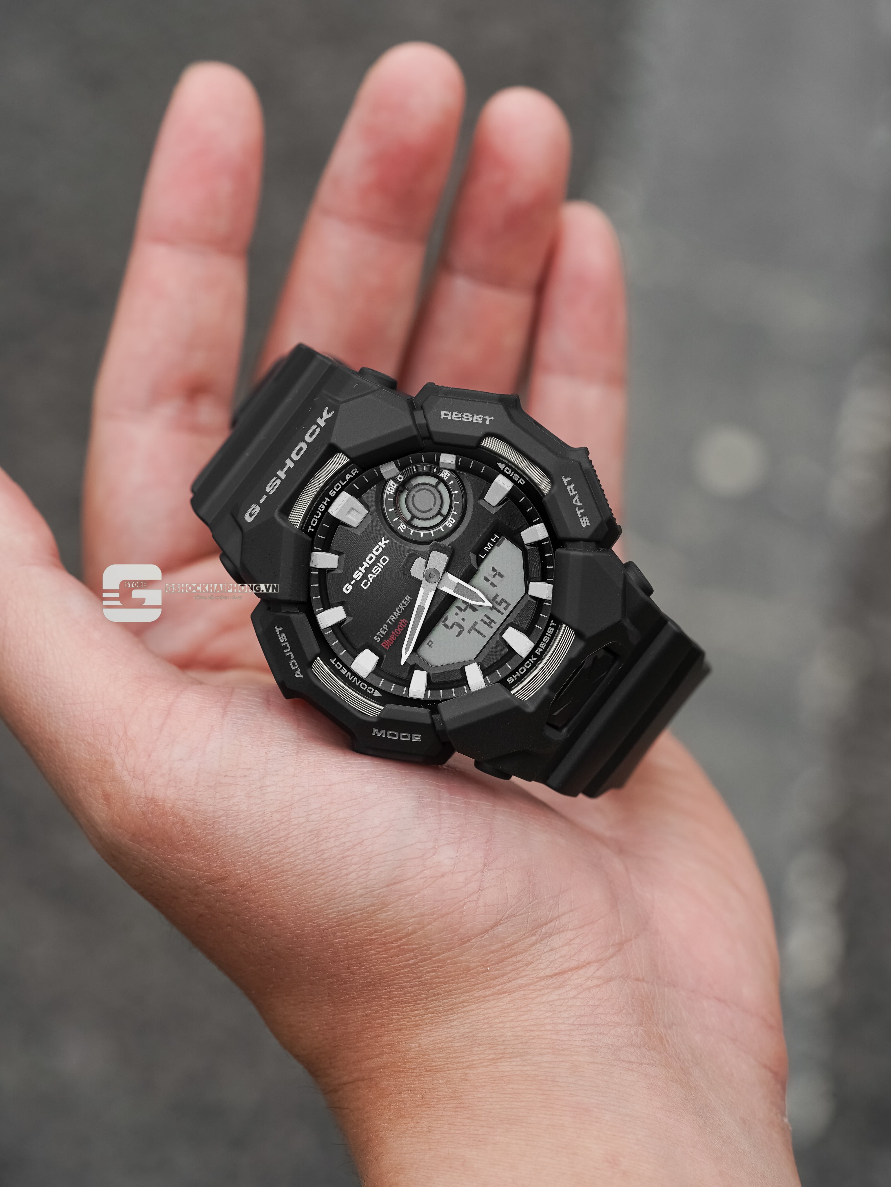 Giới thiệu chiếc đồng hồ chỉ chạy bằng năng lượng mặt trời, có khả năng theo dõi và hiển thị số bước. Sự kết hợp kim-số của GA-B010 sở hữu vỏ lớn với màn hình lớn, dễ đọc. Các chi tiết hoàn thiện tinh xảo — với vòng gờ được xử lý bằng phương pháp lắng đọng hơi nước, mặt số được hoàn thiện bằng tia nắng mặt trời và mặt số chìm được hoàn thiện bằng kim loại — tăng thêm giá trị cho thiết kế hướng đến sự bền bỉ. Chiếc đồng hồ này chỉ cần năng lượng mặt trời để đếm số bước và hiển thị dữ liệu theo dõi trên màn hình kỹ thuật số. Đồng hồ cũng gửi dữ liệu đến điện thoại thông minh được ghép nối qua Bluetooth®, mang đến đầy đủ chức năng trong tầm tay bạn. Chỉ cần chạm vào ứng dụng CASIO WATCHES để tự động hiển thị giờ chính xác và dễ dàng quản lý nhật ký cuộc sống từ điện thoại. Chiếc đồng hồ này có các tính năng tiện dụng như giờ thế giới và đồng hồ bấm giờ, cũng như đèn LED độ sáng cao có thể bật và tắt bằng nút lớn ở mặt trước của vỏ đồng hồ. Các vạch chỉ giờ và kim đồng hồ được hoàn thiện bằng chất liệu phát quang đảm bảo khả năng hiển thị ngay cả trong bóng tối. Chiếc đồng hồ này cũng được làm bằng nhựa sinh học, một vật liệu được kỳ vọng sẽ giảm thiểu tác động đến môi trường. Dễ dàng kết nối bạn từ môi trường thường ngày đến các cuộc họp kinh doanh, đây là chiếc đồng hồ đáng để bạn tận hưởng trong nhiều năm tới.