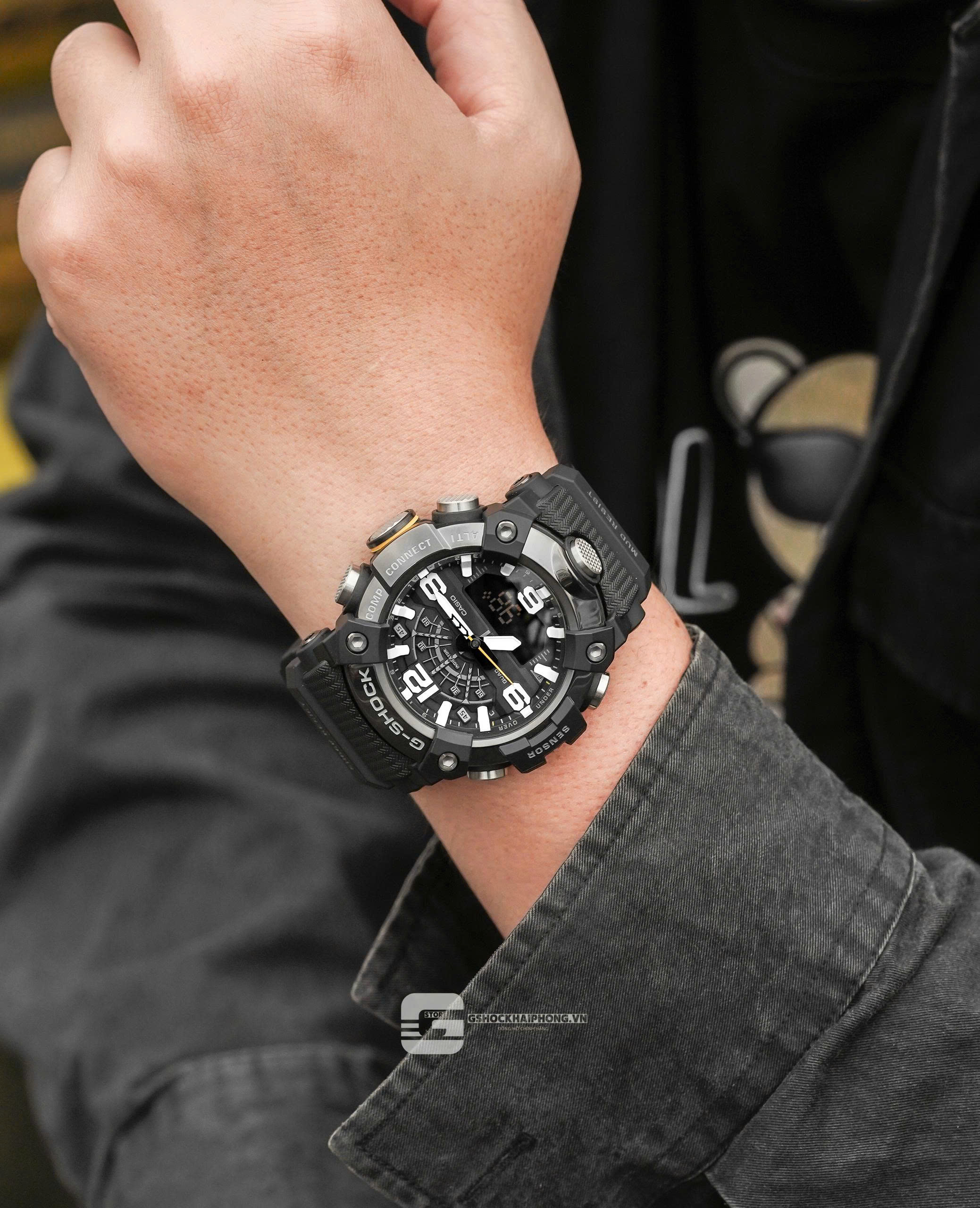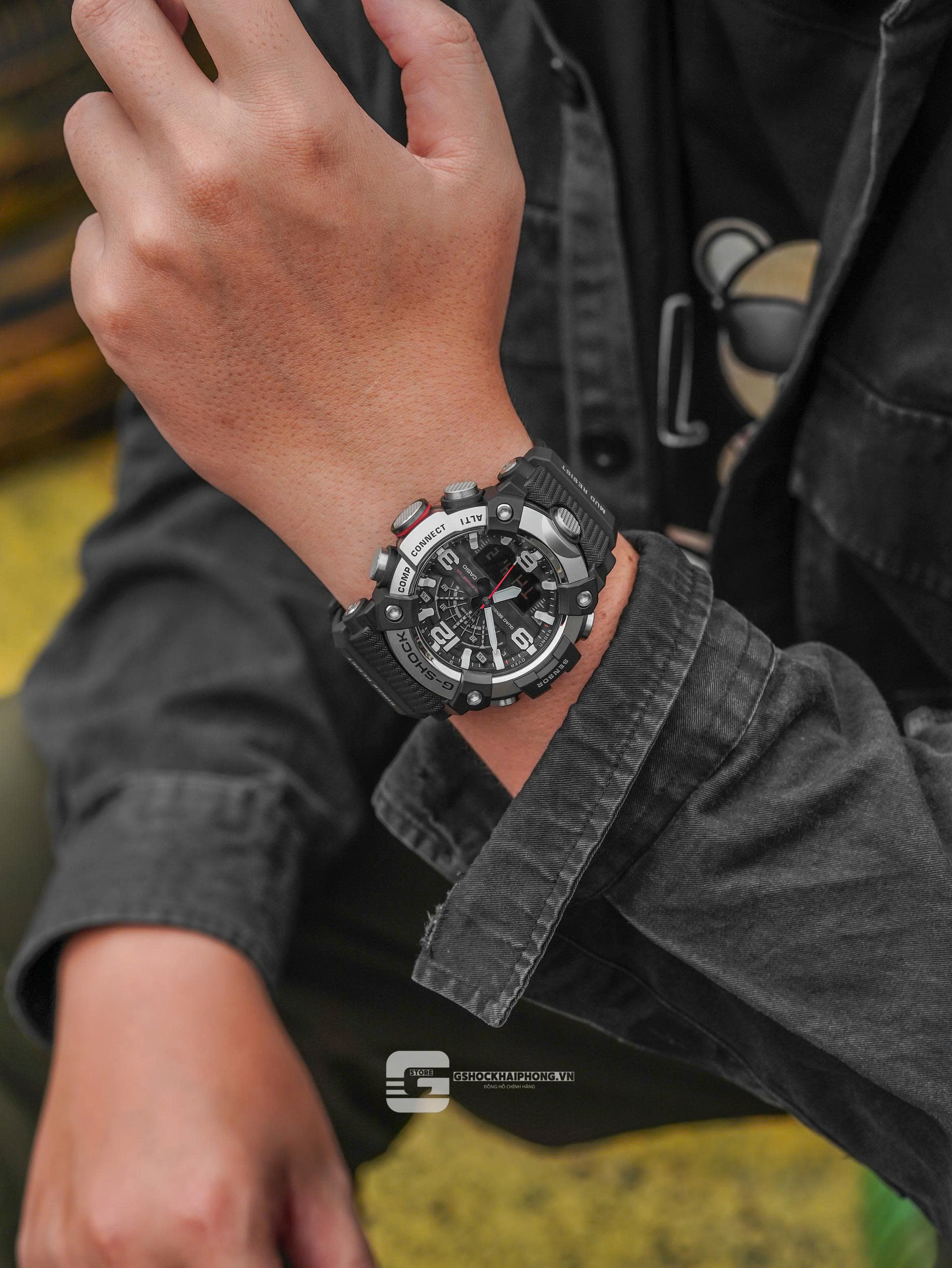 Đồng hồ MUDMASTER GG-B100X sử dụng chất liệu carbon có độ cứng cao trên vỏ máy giúp hạn chế hư hỏng và chạy chậm, đồng thời đảm bảo độ kín khí và khả năng chống va đập cao. Với bộ lọc để chống bùn, mặt sau bằng thép không gỉ và nắp lưng được làm từ nhựa tinh xảo chống va đập pha lẫn sợi thủy tinh, mẫu đồng hồ này có khả năng chống bụi và bùn rất cao. Đường gờ cũng được làm từ ba lớp nhựa tinh chế có pha sợi carbon. Thiết kế chắc chắn gợi nhớ đến những bình xăng gắn trên các xe địa hình đủ mạnh mẽ để vượt qua những địa hình khắc nghiệt nhất. Các thành phần chính của vỏ và dây đeo đều được làm bằng nhựa sinh học. Được sản xuất bằng cách sử dụng các nguồn hữu cơ tái tạo, vật liệu này được kỳ vọng sẽ giúp giảm tác động đến môi trường.