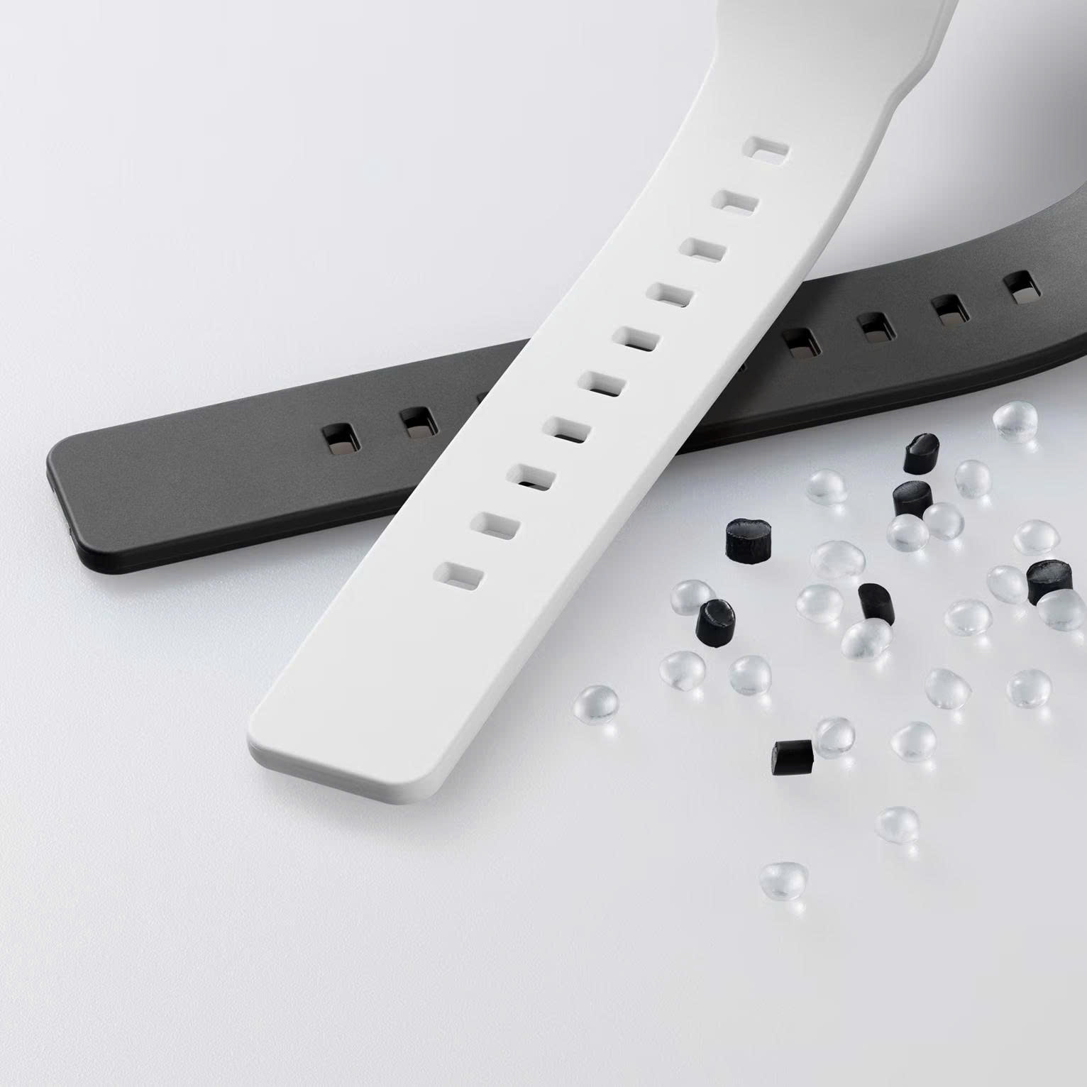 * Các thành phần nhựa chính được sử dụng cho dây đeo đều được làm bằng nhựa sinh học. Được sản xuất bằng cách sử dụng các nguồn hữu cơ tái tạo, vật liệu này được kỳ vọng sẽ giúp giảm tác động đến môi trường.