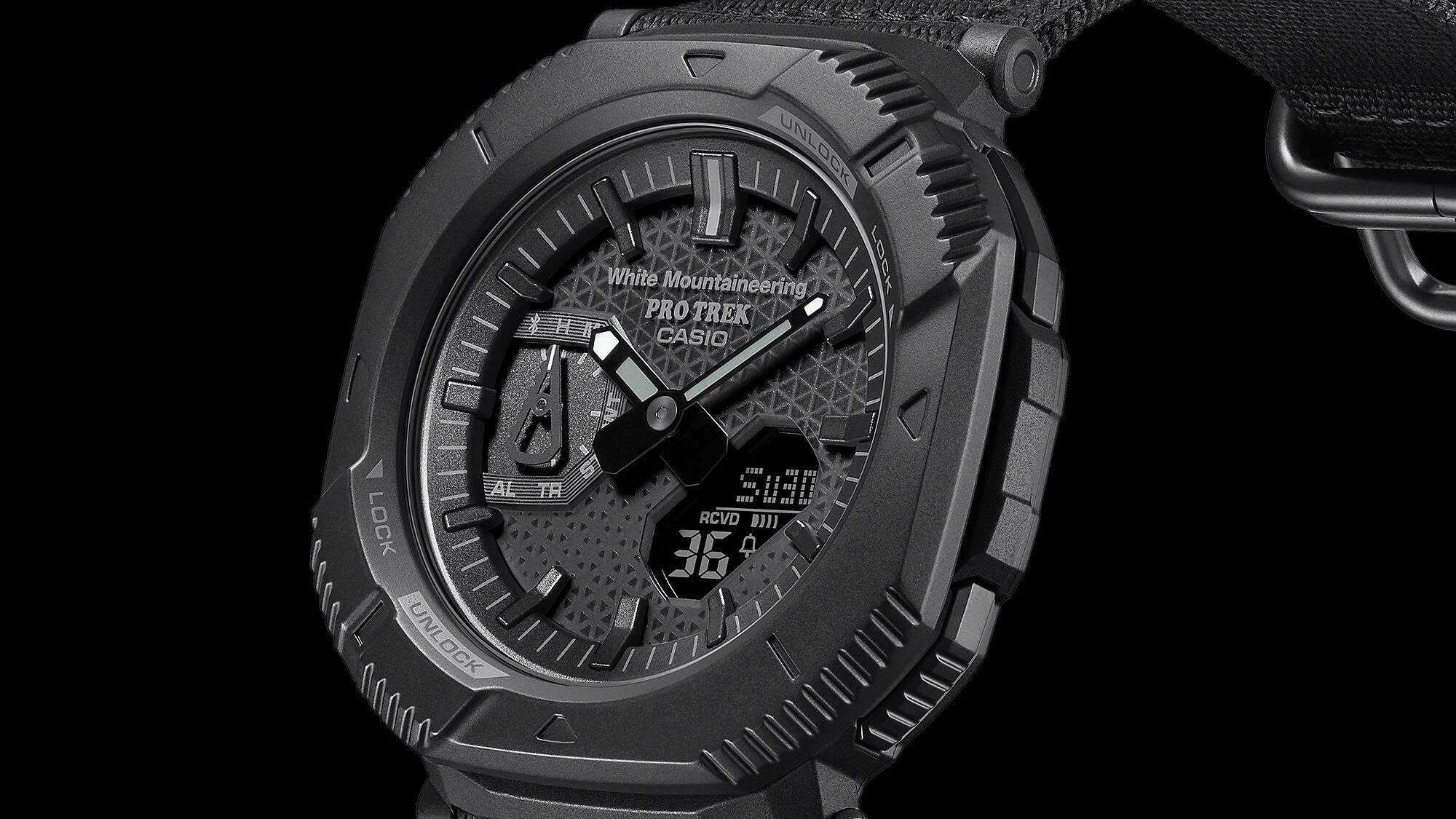 PRJ-B001 nâng tầm thiết bị lên một tầm cao mới với gờ bảo vệ xoay đầu tiên trong dòng PRO TREK. Xoay gờ xoay để chuyển đổi giữa hai phong cách riêng biệt. Khi được đặt để thể hiện một thiết kế góc cạnh đầy phong cách, bổ sung cho phong cách thời trang hàng ngày, gờ bao phủ các nút, ngăn ngừa việc vô tình nhấn nút khi đi bộ ra ngoài hoặc trong thị trấn. Xoay gờ 45 độ để đồng hồ trông tròn hơn và mở các nút để dễ dàng truy cập chức năng khi đi bộ đường dài hoặc tập luyện.