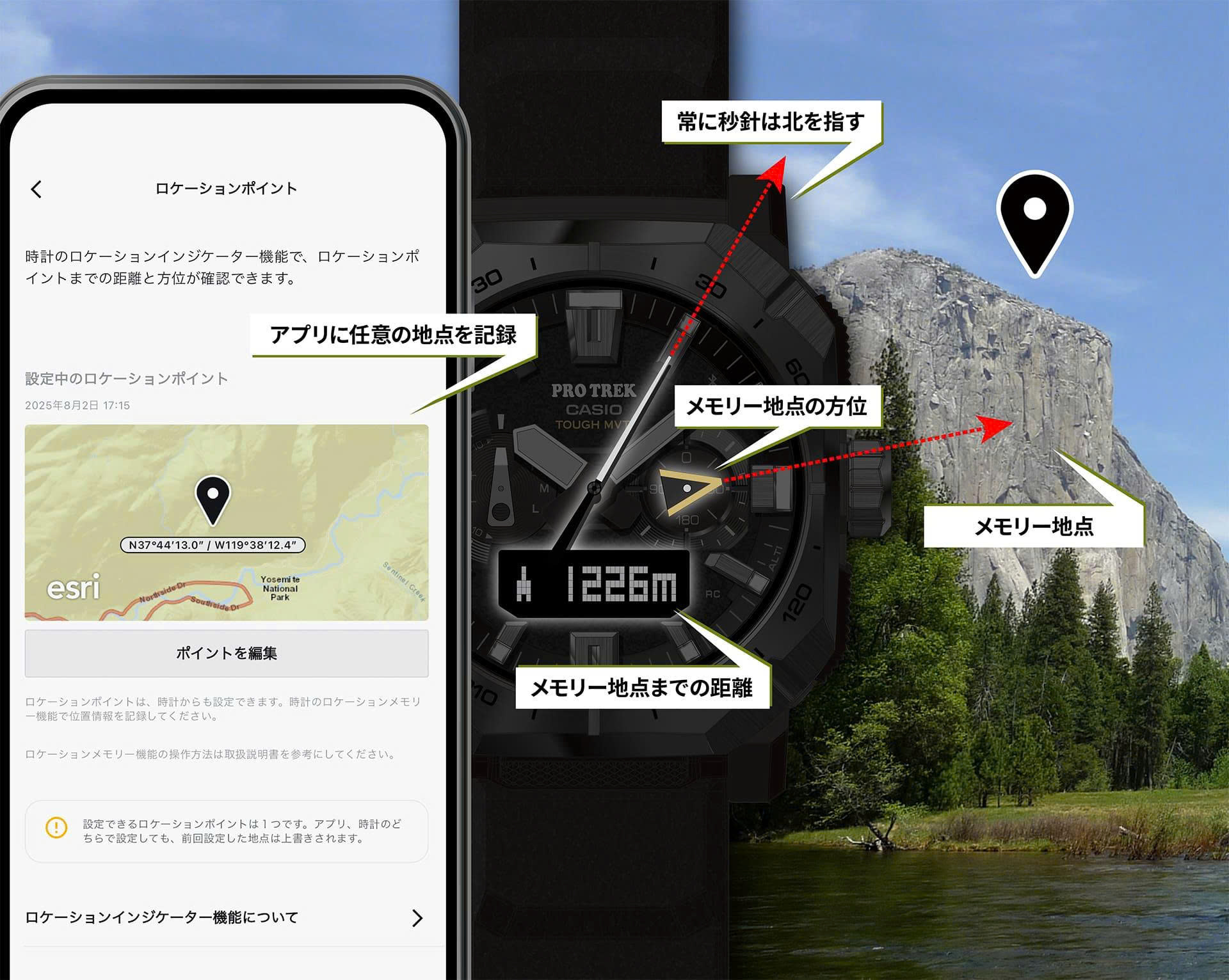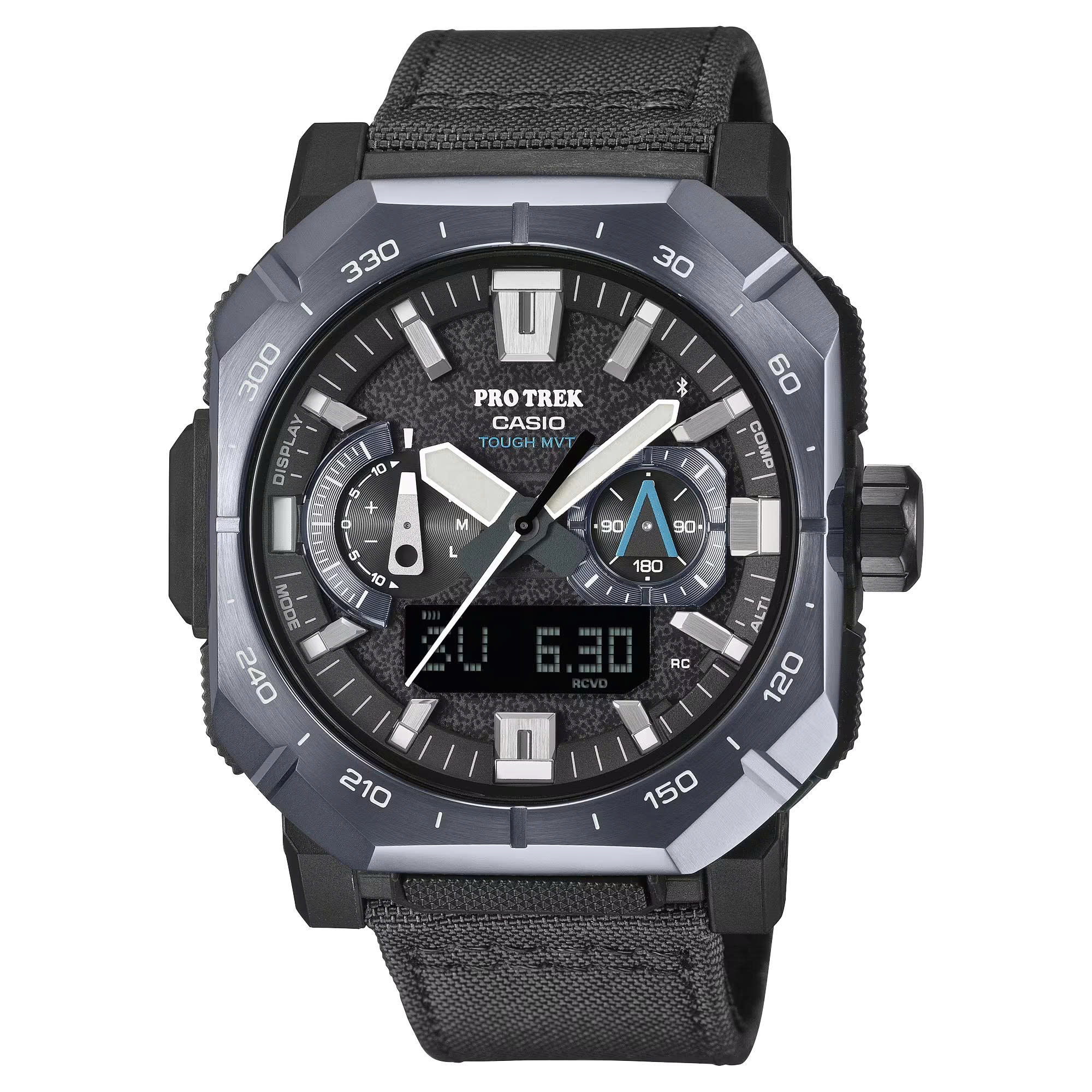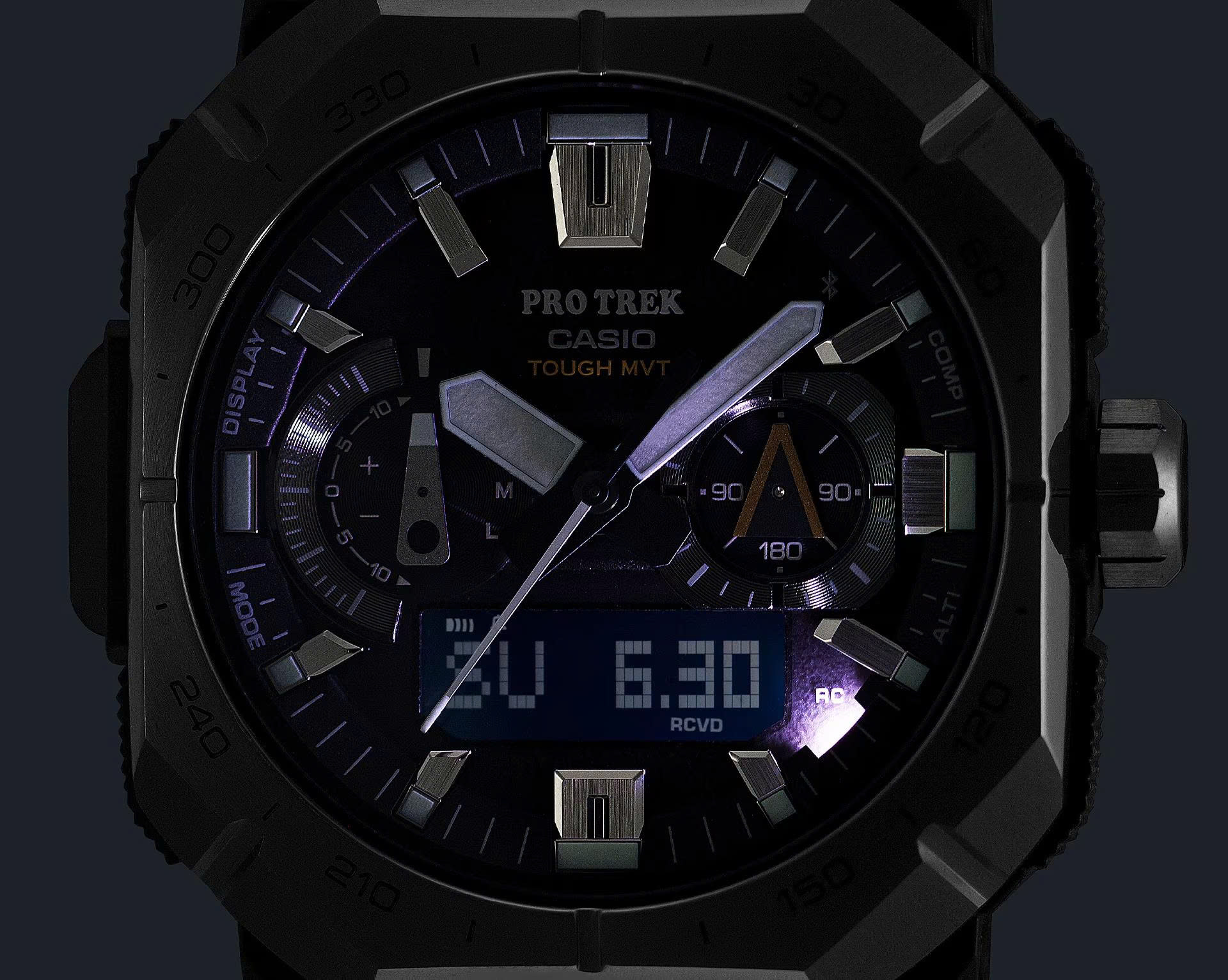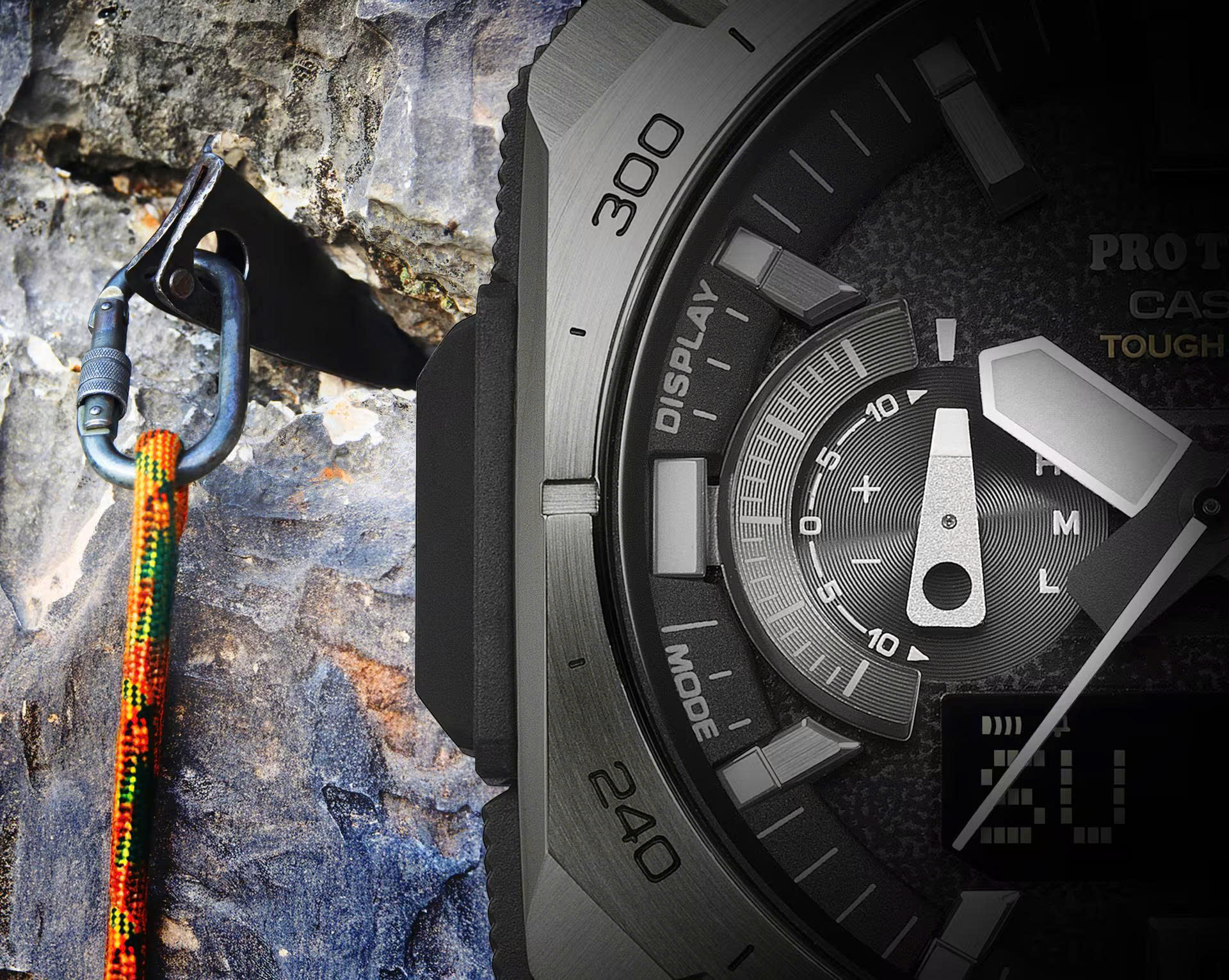 Đồng hồ duy trì thời gian chính xác thông qua tín hiệu thời gian sóng radio từ sáu trạm toàn cầu, trong khi kết nối Bluetooth® với điện thoại thông minh cũng đảm bảo khả năng giữ giờ tự động và chính xác ngay cả khi không có vùng phủ sóng. Cảm biến bộ ba đo hướng la bàn, áp suất khí quyển, độ cao và nhiệt độ. Kết hợp với các tính năng như Chỉ báo vị trí, Thời gian & Địa điểm và điều chỉnh độ cao tự động, đồng hồ cung cấp dữ liệu môi trường theo thời gian thực cần thiết cho việc leo núi.