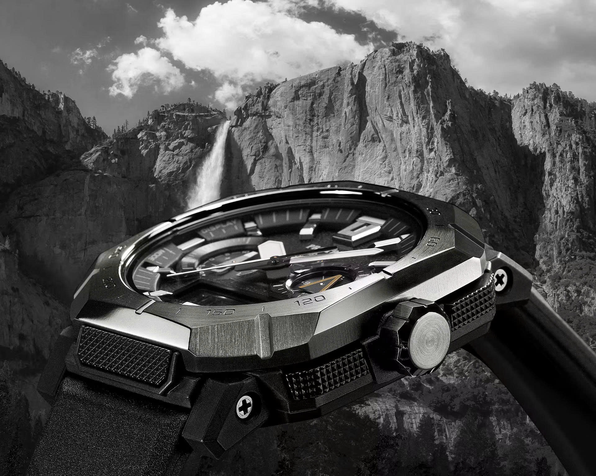Lấy cảm hứng từ những vách đá của Vườn quốc gia Yosemite, khung gờ bằng thép không gỉ góc cạnh tạo nên sự hiện diện mạnh mẽ và vững chắc. Tông màu xanh dương dịu nhẹ bổ sung cho vỏ nhựa sinh học chống cháy, kết hợp với dây đeo CORDURAre/cor™ bền chắc, kết hợp hiệu suất thiết thực với sự cân nhắc đến môi trường.