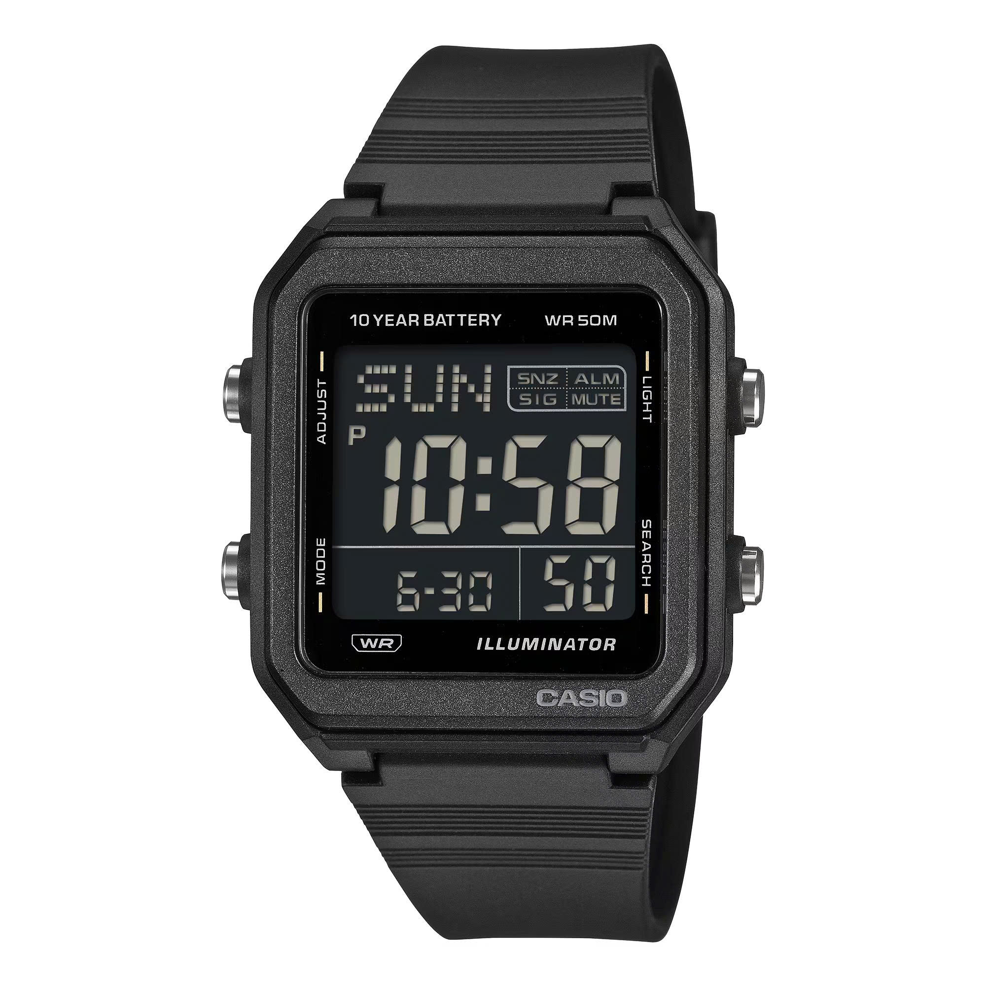 Hãy đeo một chiếc đồng hồ số đơn giản nhưng thiết thực với thiết kế góc cạnh táo bạo. Với màn hình LCD lớn cho khả năng hiển thị vượt trội, đèn nền LED giúp dễ đọc và pin có tuổi thọ 10 năm, chiếc đồng hồ này còn được tích hợp nhiều chức năng tiện dụng như giờ thế giới, đồng hồ bấm giờ, báo thức, hẹn giờ, lịch tự động hoàn toàn và nhiều hơn nữa.