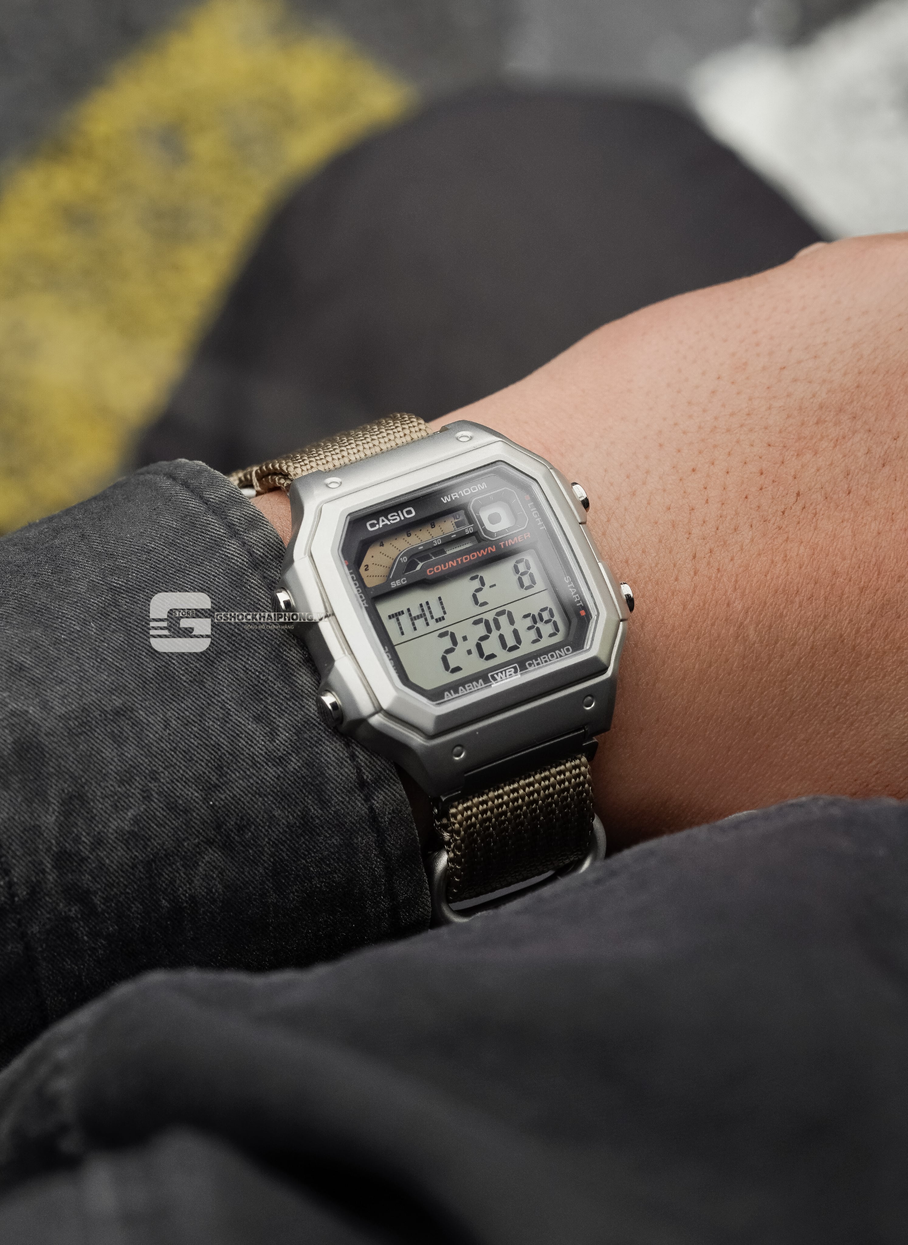 CASIO WS-1600H-1A ( Lắp thêm vỏ thép - Dây vải Military )