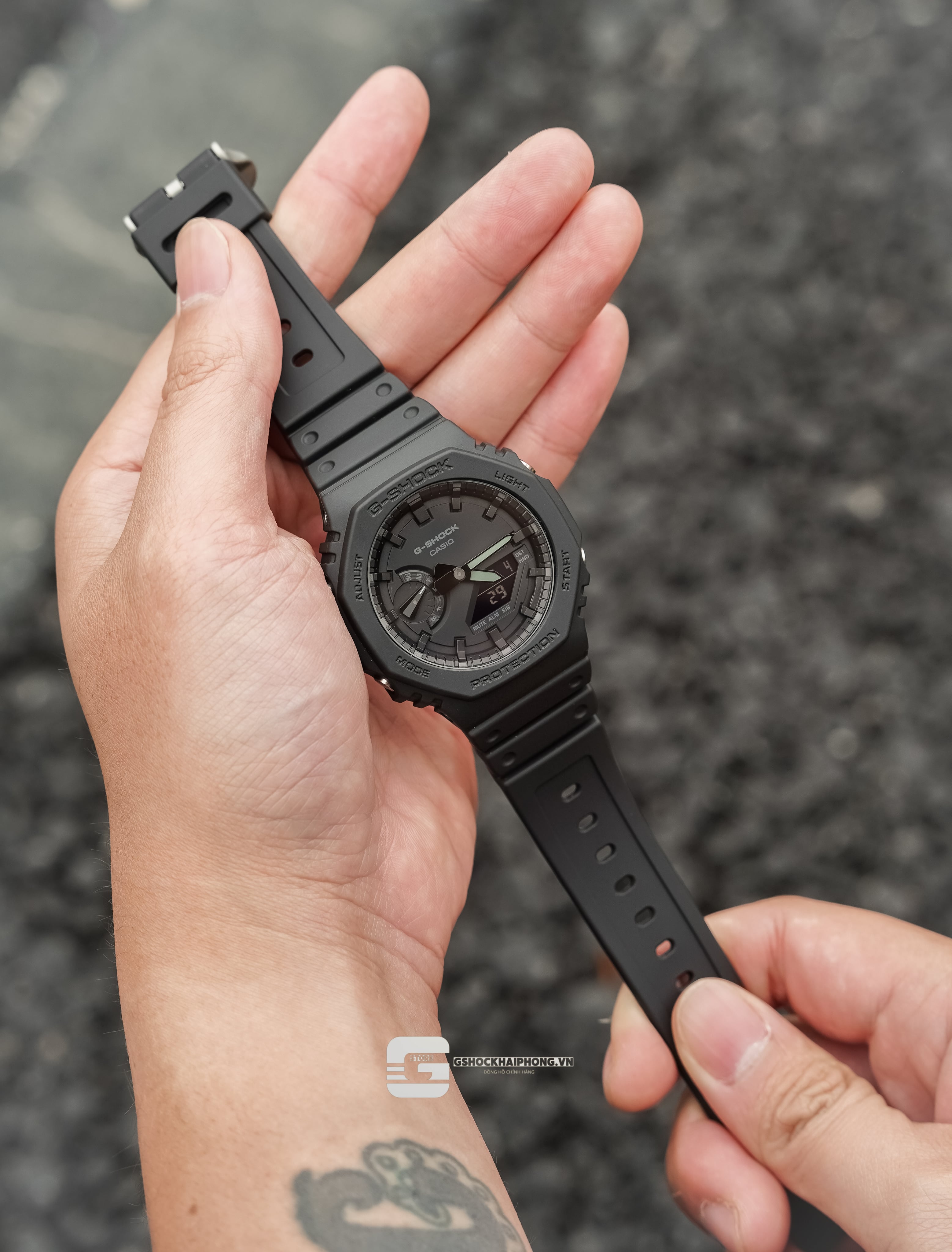 Chất liệu nhựa vô cùng mạnh mẽ còn được gia cố sợi cacbon giúp tạo nên lớp vỏ chỉ dày 11,8 mm. Đây là lớp vỏ mỏng nhất trong số các mẫu kết hợp của G-SHOCK.