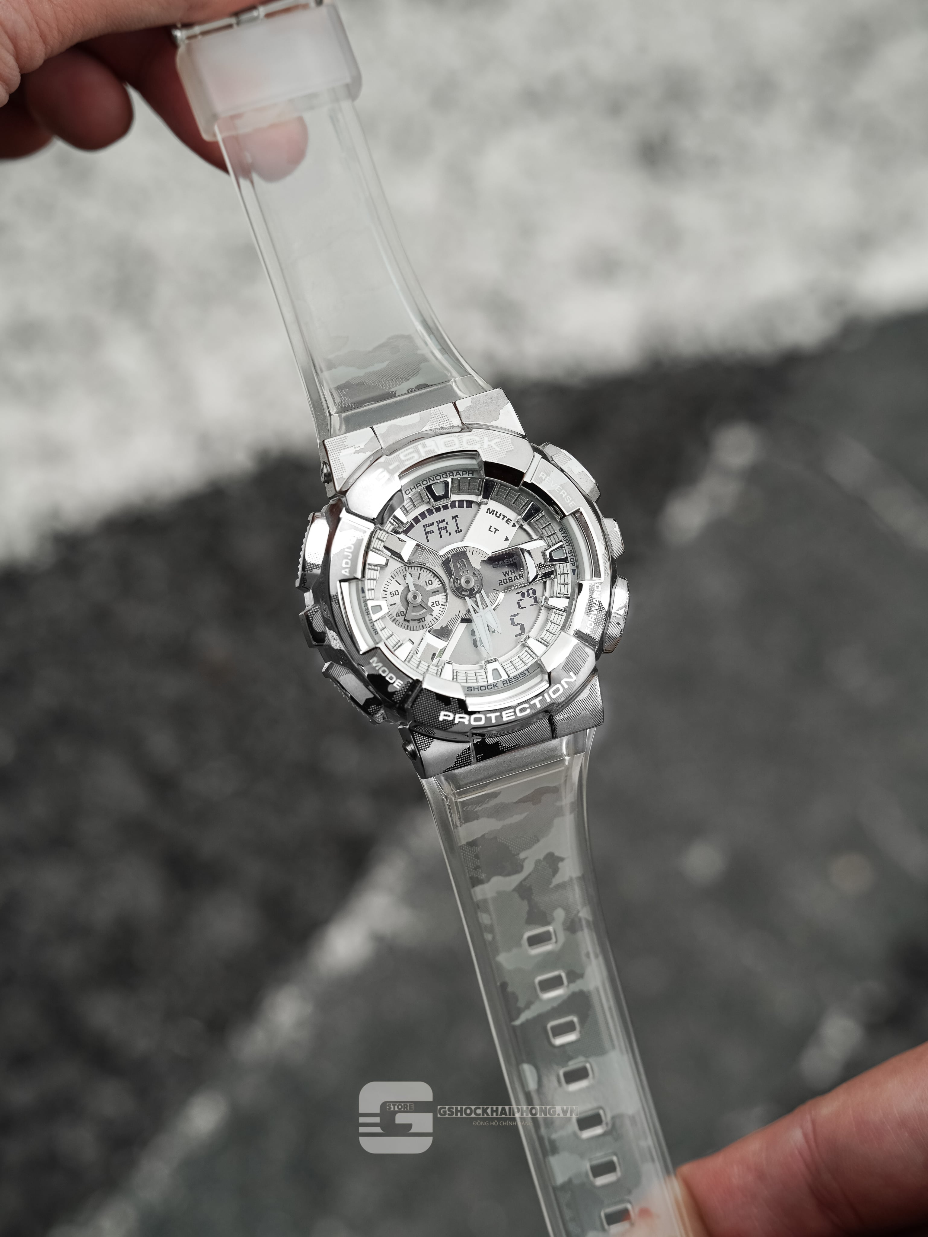 Dòng G-SHOCK phủ kim loại mới này bao gồm GM-110, GM-5600 và GM-6900 có dây đeo bán trong suốt thời trang cùng họa tiết ngụy trang.