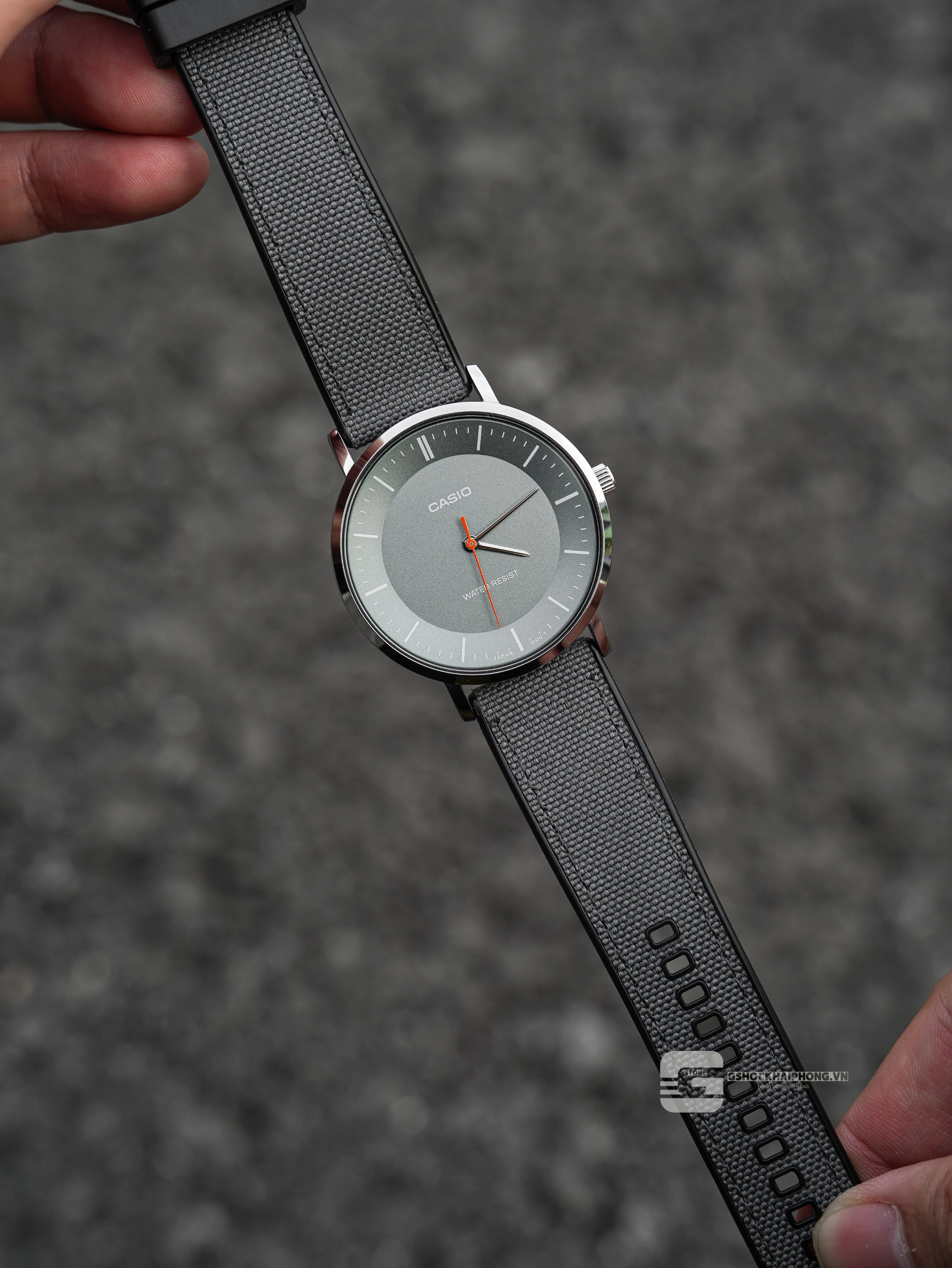 Casio G-Shock Hải Phòng vừa cập bến đồng hồ Casio MTP-VT04 – Dây cao su bọc vải Nylon xám thanh lịch và bền bỉ.