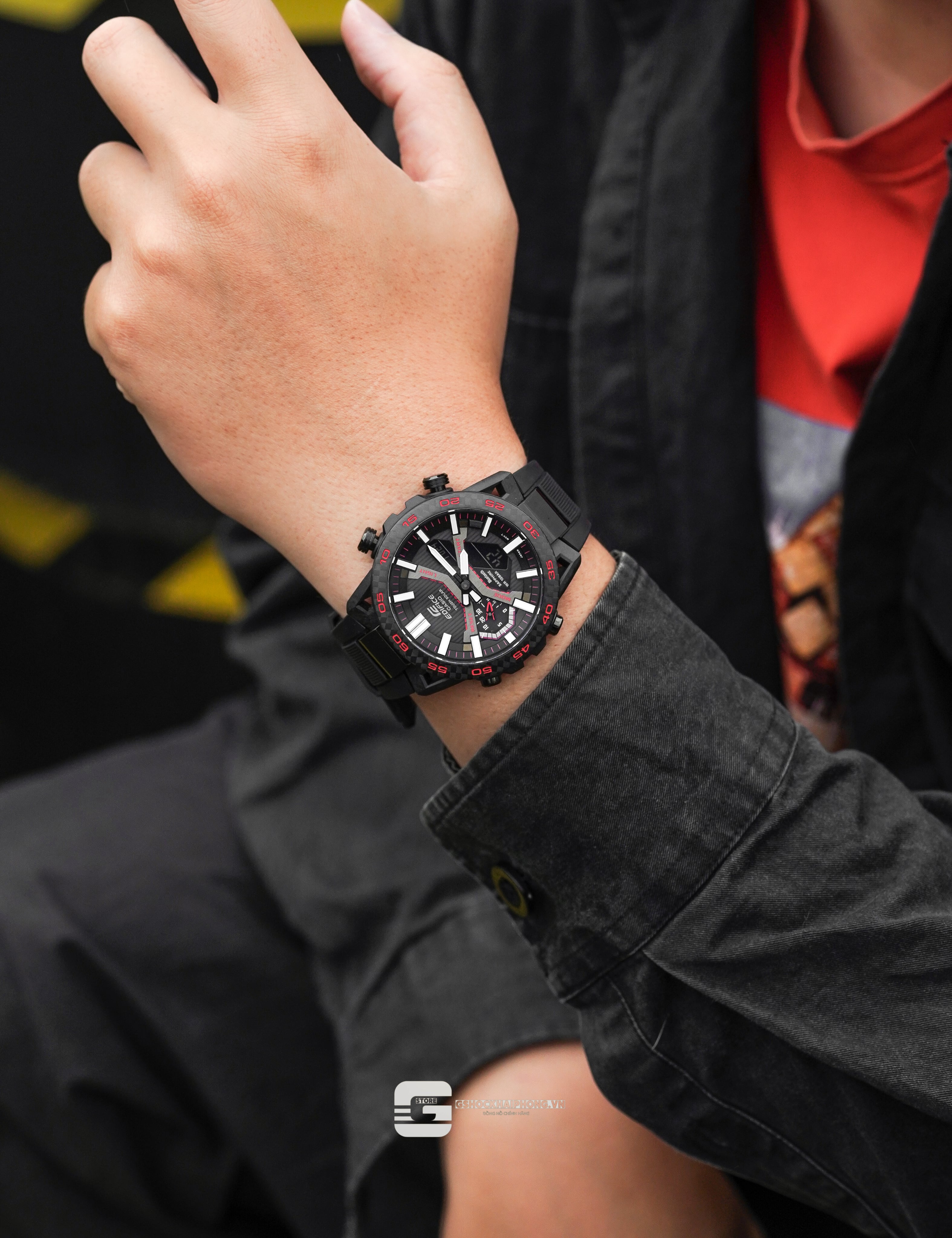 Thiết kế Carbon Core Guard hiện đại, tông đen mạnh mẽ và đầy chiều sâu. Trang bị mặt kính Sapphire cùng công nghệ Bluetooth và Tough Solar – sự kết hợp giữa thể thao và công nghệ cao trong một tổng thể đậm chất tình thần Edifice.
