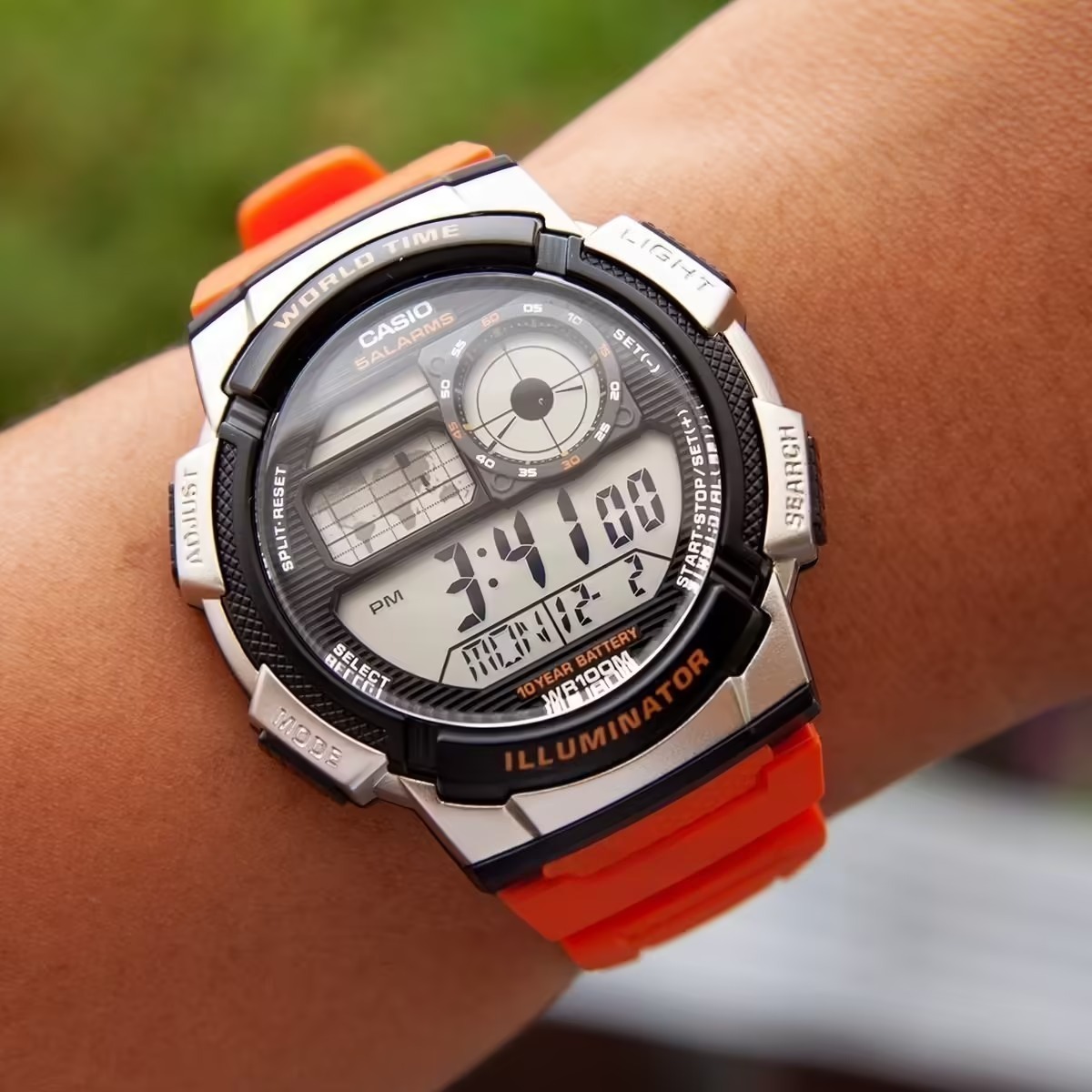 Khác với dòng MTP chỉ chống nước nhẹ, AE-1000 cho phép bạn mang đi bơi, lặn nông hoặc đi dưới những cơn bão nhiệt đới mà không hề hấn gì. Đây là thông số chuẩn cho một chiếc đồng hồ thể thao thực thụ.