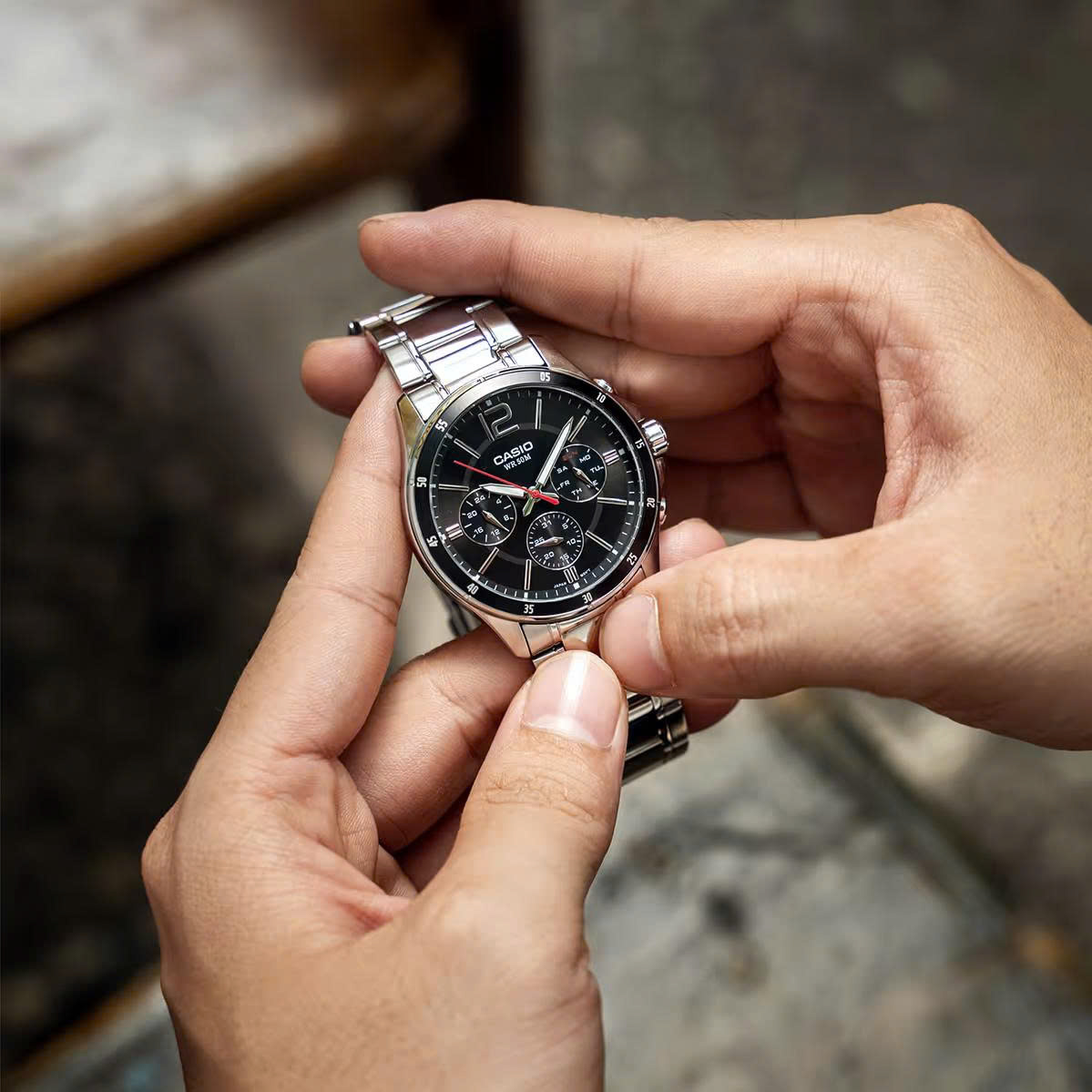 Dù bạn đang bắt đầu xây dựng bộ sưu tập đồng hồ của mình hay đang tìm kiếm một chiếc đồng hồ đeo hằng ngày bền bỉ, MTP-1374 chắc chắn sẽ không làm bạn thất vọng. Hãy sở hữu ngay "siêu phẩm 6 kim" này để nâng tầm phong cách của chính mình!