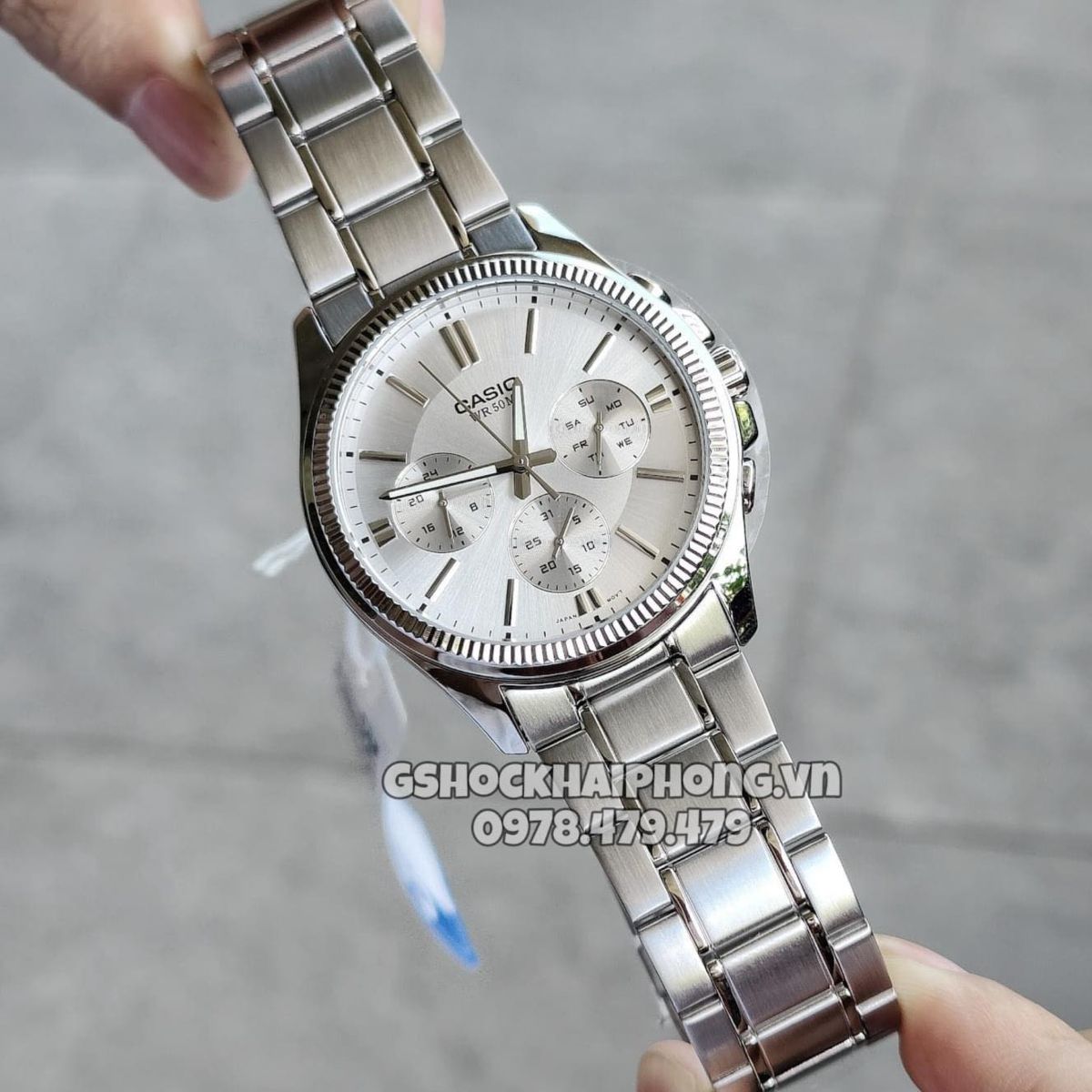 MTP-1375 sở hữu 3 mặt số phụ (sub-dial) được sắp xếp cân đối tại các vị trí 3 giờ, 6 giờ và 9 giờ. Cách thiết kế này mang lại vẻ ngoài "Multi-function" đầy năng lượng: