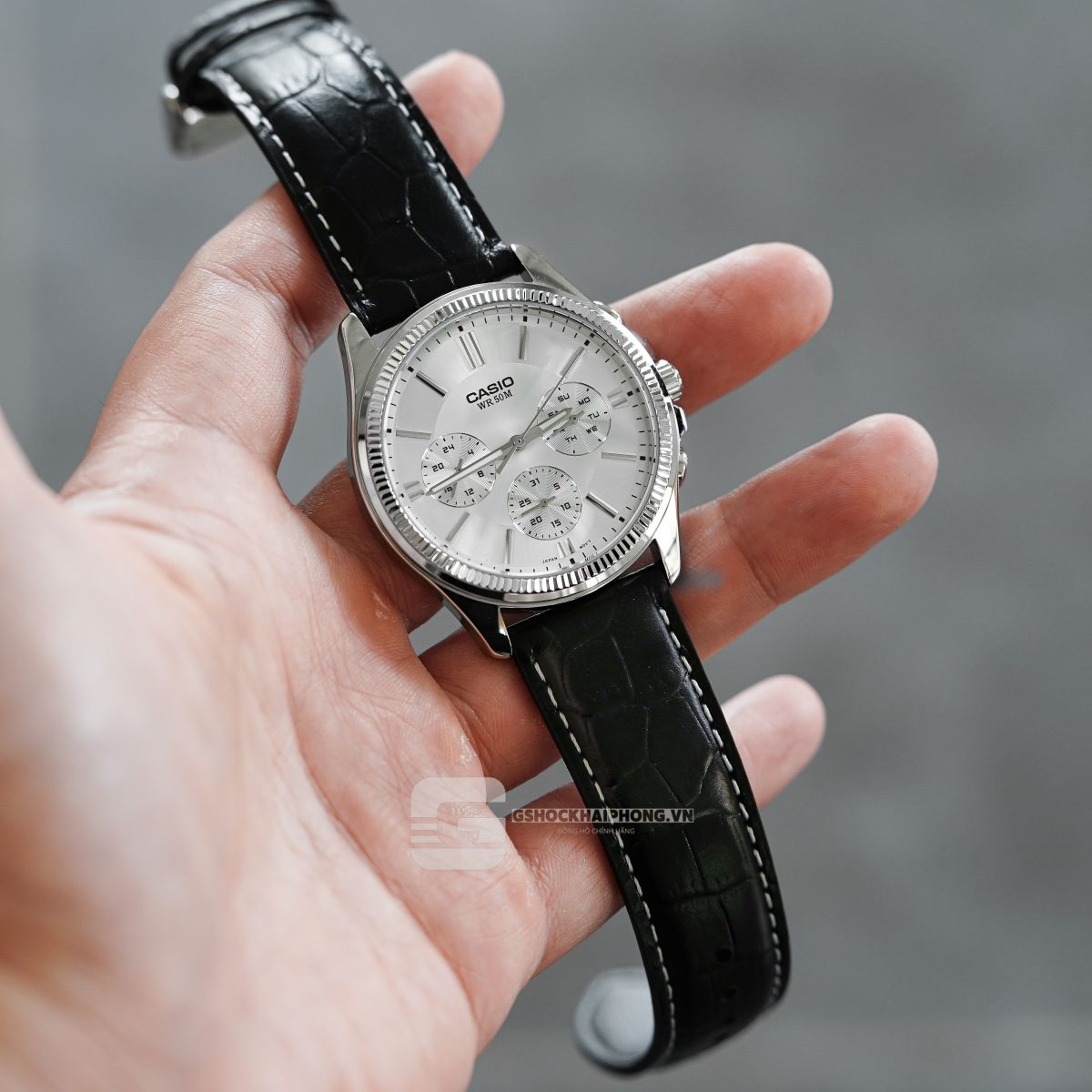 • Dây da (MTP-1375L): Thường là dây da trơn hoặc vân cá sấu, mang lại cảm giác cổ điển, nhẹ nhàng và ôm sát cổ tay.