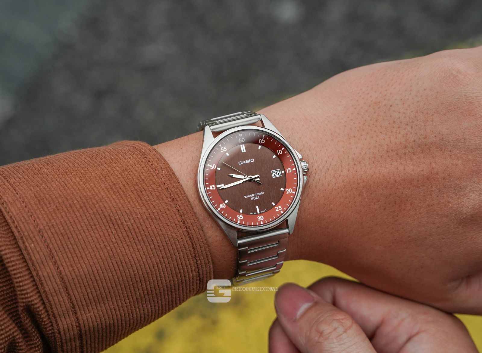 Điểm khiến MTP-E705 ghi điểm đầu tiên là kích thước cân đối. Không quá lớn, không quá nhỏ, đeo lên tay trông gọn và sang. Đây là kiểu đồng hồ mà bạn có thể đeo mỗi ngày, không hề kén đồ và không gây khó chịu khi làm việc.