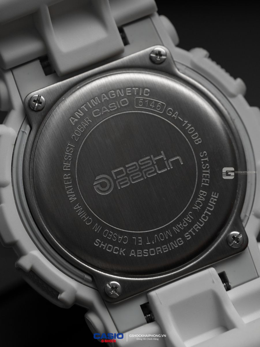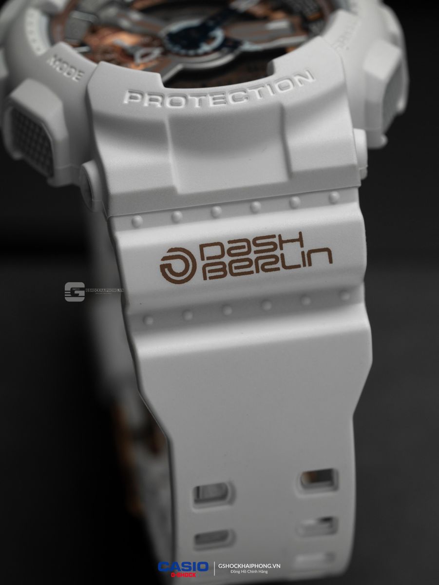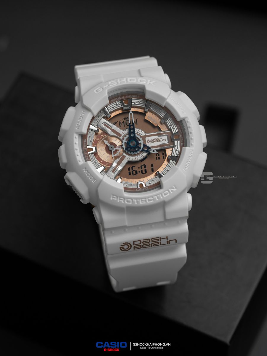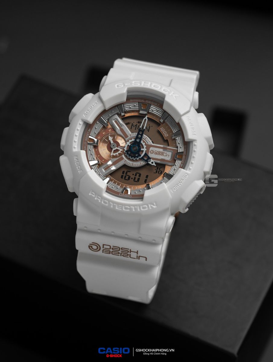 - Dash Berlin không chỉ nổi tiếng với những bản nhạc đầy cảm xúc mà còn bởi những buổi trình diễn ánh sáng choáng ngợp. Chiếc GA-110DB-7A được thiết kế để phản chiếu chính không gian đó. Tone màu chủ đạo của đồng hồ là trắng tinh khôi, tượng trưng cho những tia laser rực rỡ và năng lượng bùng nổ của dòng nhạc EDM.