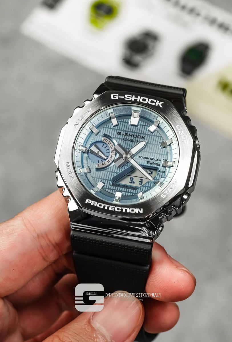 Casio G-Shock GBM-2100 là phiên bản nâng cấp hoàn hảo của dòng “2100” nổi tiếng: vẫn giữ kiểu dáng bát giác đặc trưng nhưng được trang bị vỏ kim loại + viền thép sáng bóng, sử dụng công nghệ Tough Solar (năng lượng mặt trời) và Bluetooth Smartphone Link, phù hợp cho người dùng hiện đại muốn một chiếc đồng hồ vừa mạnh mẽ vừa tinh tế